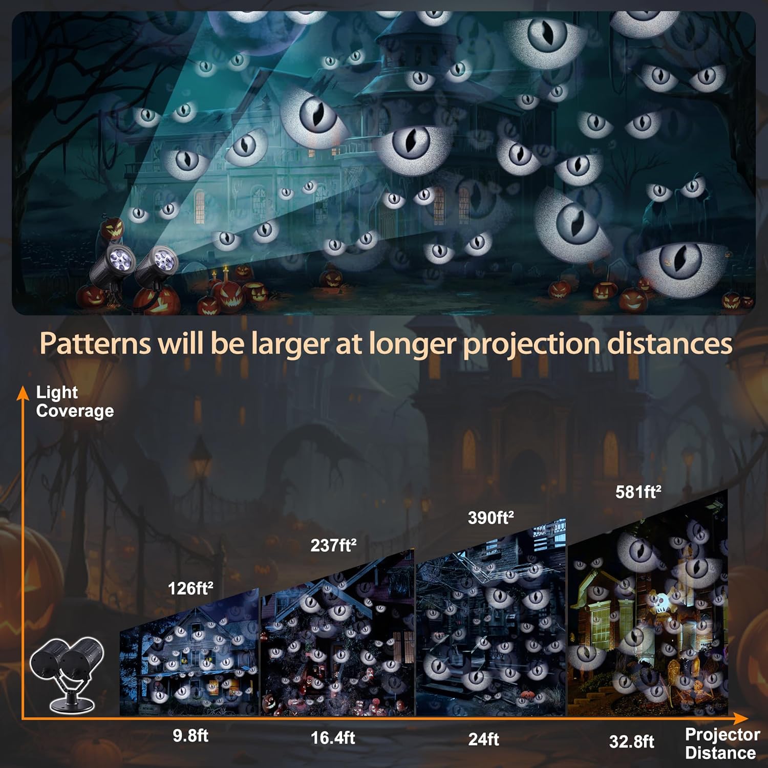 - Halloween Projector Lights: The Halloween projector with Grey devil's eyes pattern design, creating a eerie and creepy, colorful space projection atmosphere for your house, room, party, to show you a funny Halloween lighting sky. Great Halloween decorations Projector choice for you and your family.