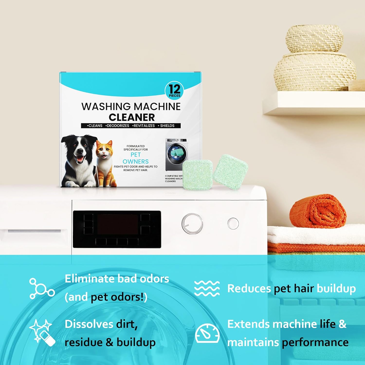 Washing Machine Cleaner 48 Pack-24 Month Supply,Cleaning Tablets Formulated for Pet Owners for He,Easy Pet Hair Remover for Laundry.Top & Front Load Washer.Septic Safe.