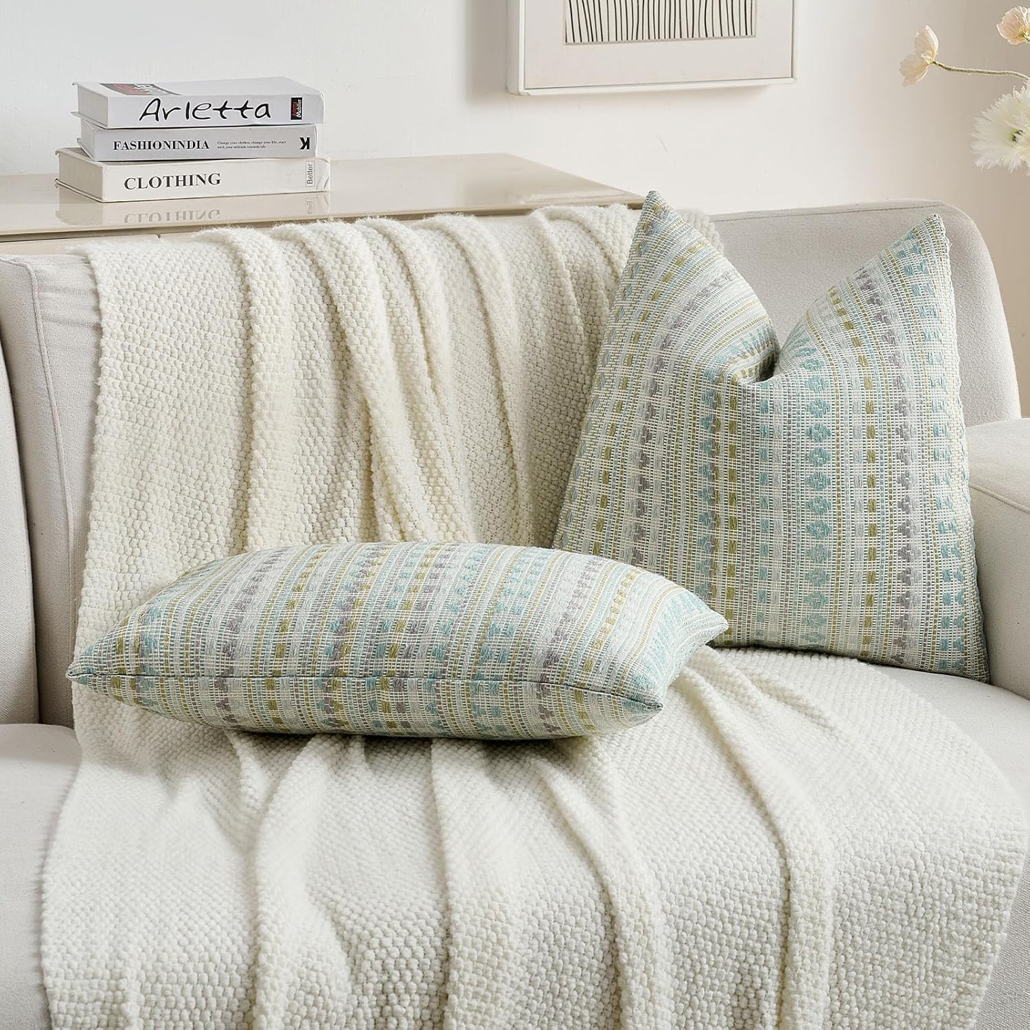 FUTEI Green Blue Decorative Throw Pillow Covers 20x20 Inch Set of 2,Soft Cozy Chenille Jacquard Textured Cushion Case,Boho Home Decor for Couch Bed Living Room