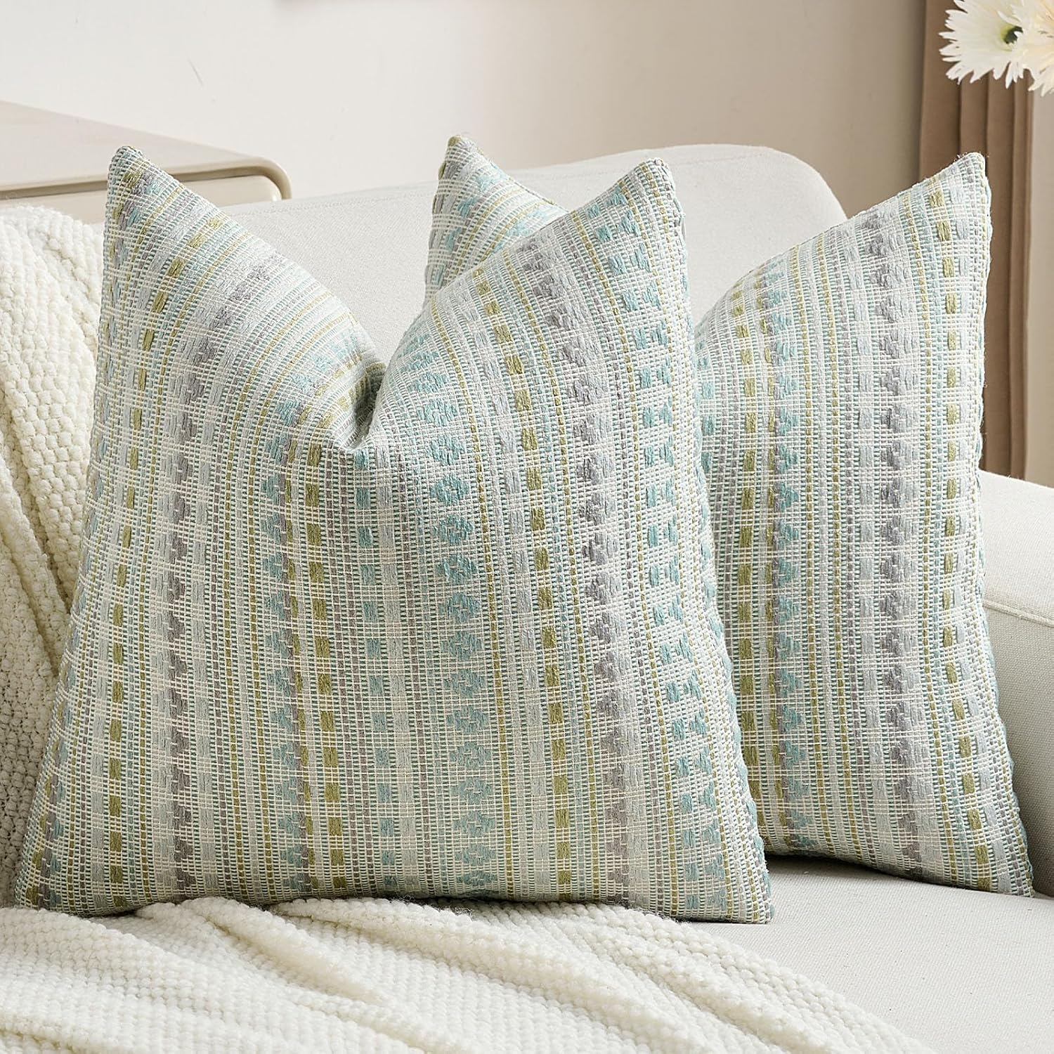 FUTEI Green Blue Decorative Throw Pillow Covers 18x18 Inch Set of 2,Soft Cozy Chenille Jacquard Textured Cushion Case,Boho Home Decor for Couch Bed Living Room