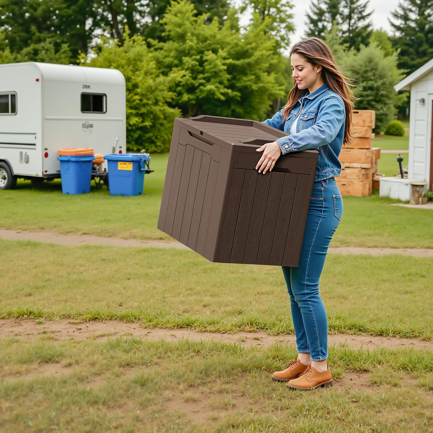 Devoko 30 Gallon Resin Deck Box 2 Pack Outdoor Indoor Waterproof Storage Box for Patio Furniture Pool Accessories Storage for Cushion Garden Tools (Brown, 2 Pack)