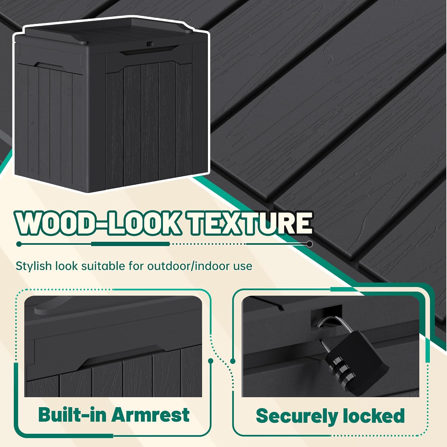 - Light & Solid: Made of a high density resin material, it is stable, waterproof and UV resistant. The net weight of this deck box is only 8.8 pounds