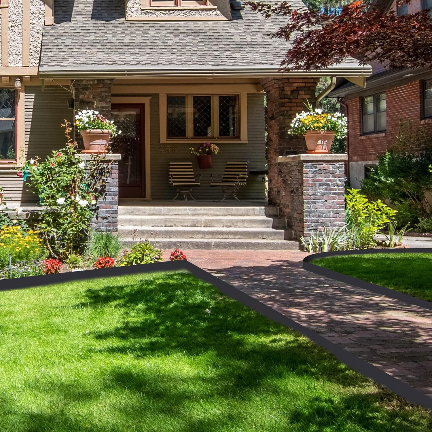 - KIT INCLUDES: Landscape edging kit includes 2“ tall 40' long garden edging, 36 8” garden spikes, 1 pair of scissors and 2 connectors. Edging helps you create a neater landscaping and a more professional look for your garden