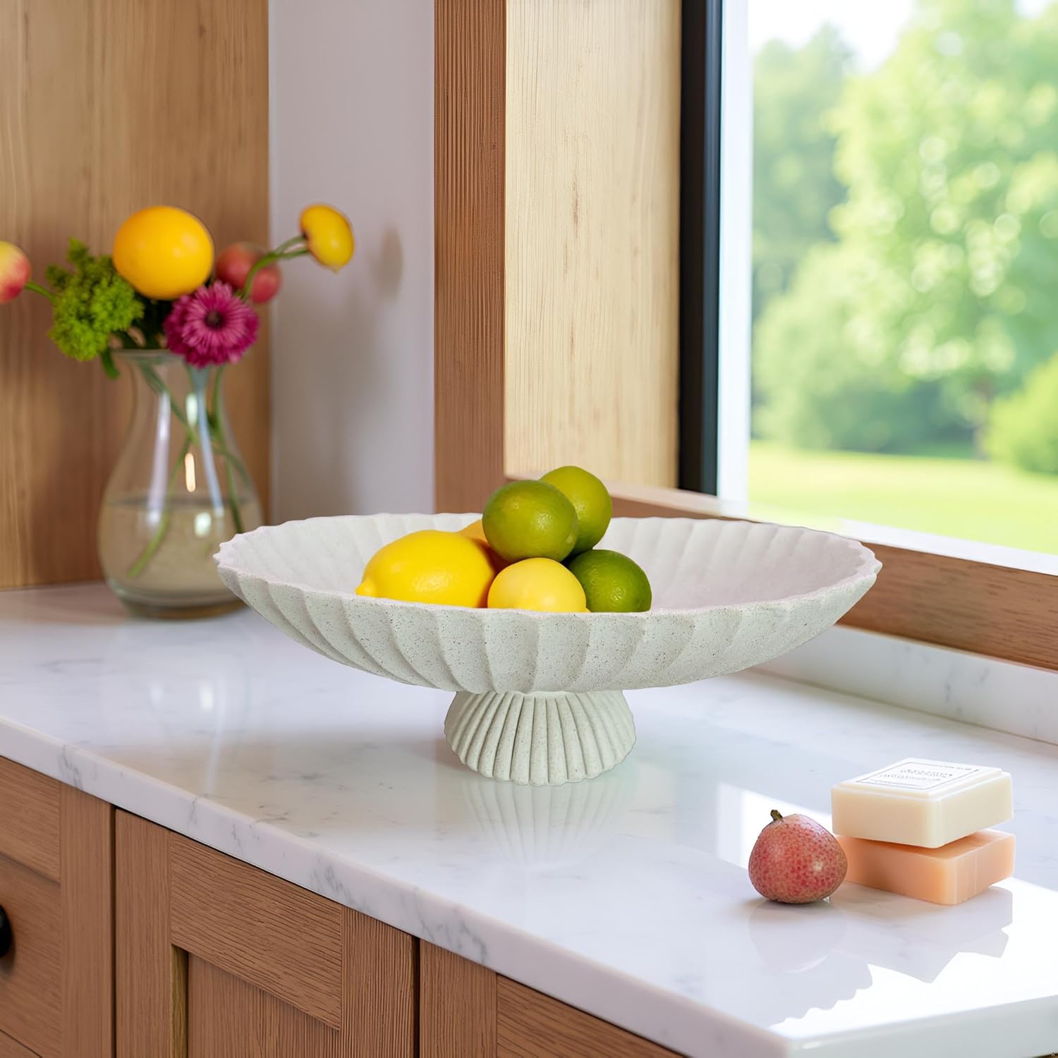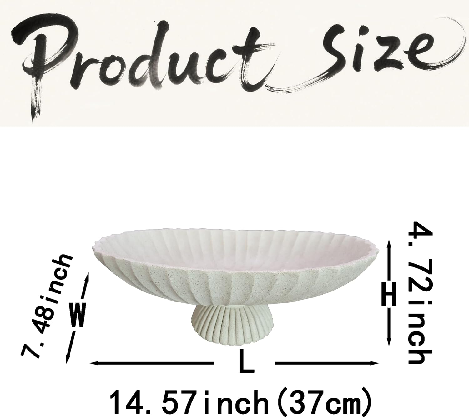 14.5" Large Decorative Long Bowl decor - Fluted Scalloped Decorative Bowls for Home Decor - Ruffle Decor,Stylish Key Bowl for Entry Table,Decorative Fruit Bowls for Kitchen Counter,Light Gray