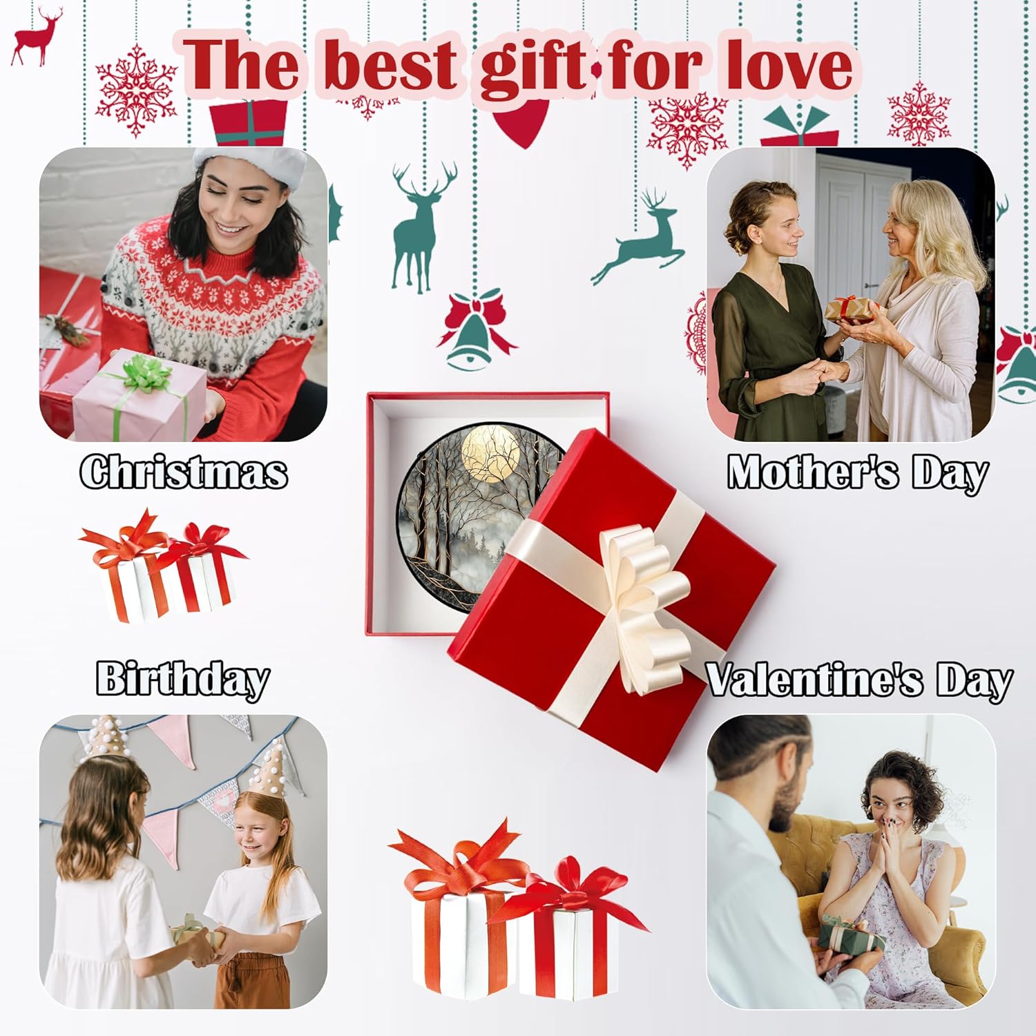Stained Glass Window Hanging - Black and White Gold Moon Forest Sun Catcher for Door Home Decor Suncatcher Christmas Mother's Day Birthday Gifts for Women Men Lovers Mom Nana 9.8 in