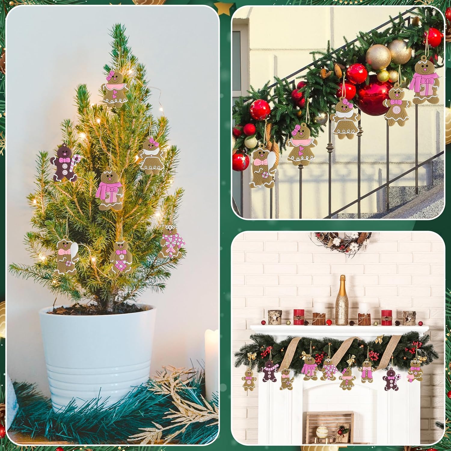 - PACKAGE: You will receive 12 pink gingerbread ornaments, each one uniquely designed with intricate details to look just like real gingerbread cookies. The Christmas tree decoration also comes with gold hanging ropes, making it easy to hang and decorate anytime