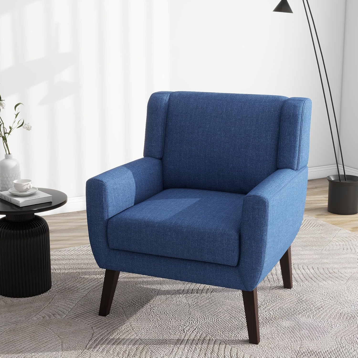 UIXE Accent Chairs Set of 2, Fabric Upholstered Armchair for Living Room, Comfy Arm Chair Single Sofa Bedroom Side Reading Seat - Flax Blue