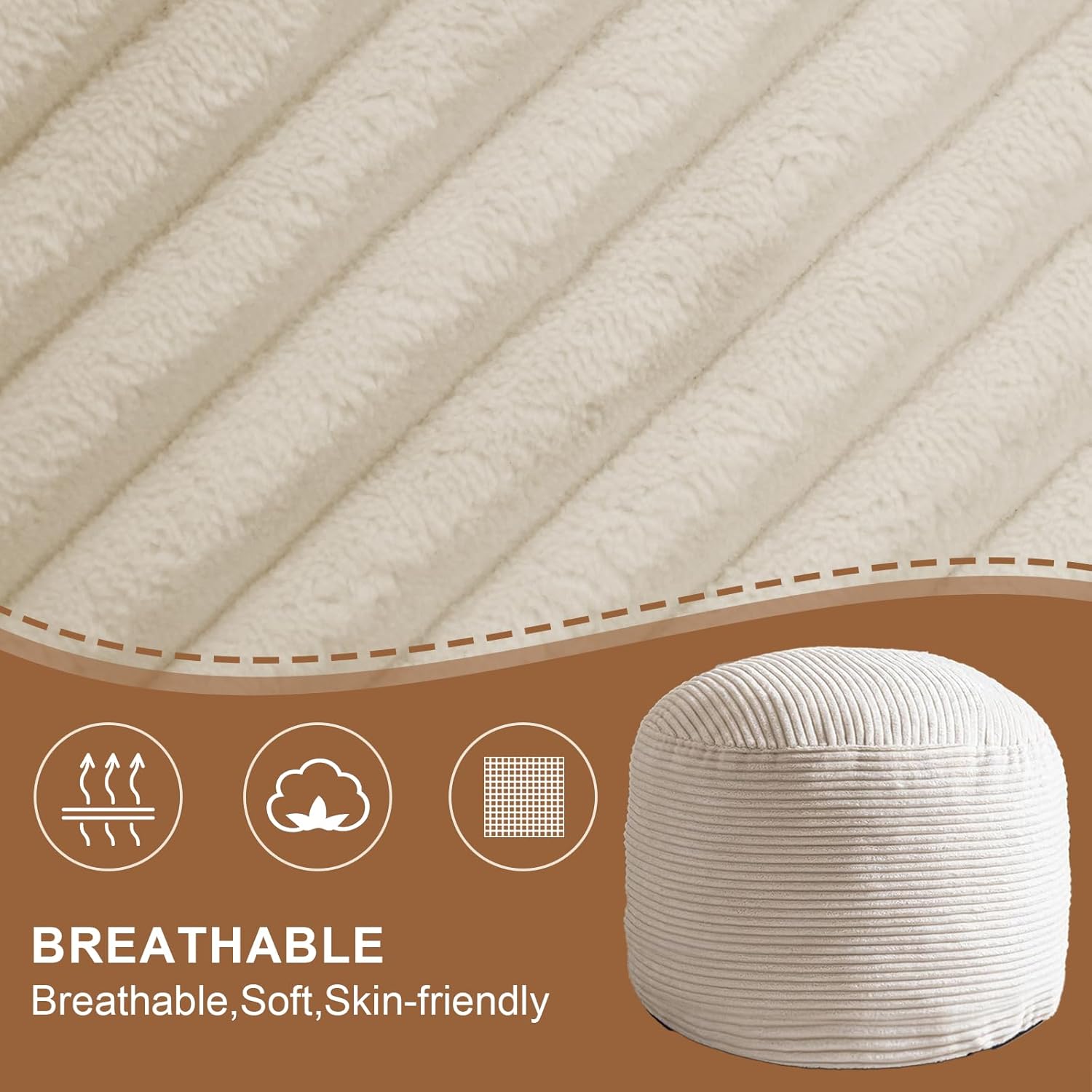 Round Stuffed Pouf Ottoman, Foot Stools Ottoman,Corduroy Poufs with Foam Chunk Filling, Furry and Fluffy Storage Ottomans, 20 X 15 Floor Poufs Foot Rest for Living Room
