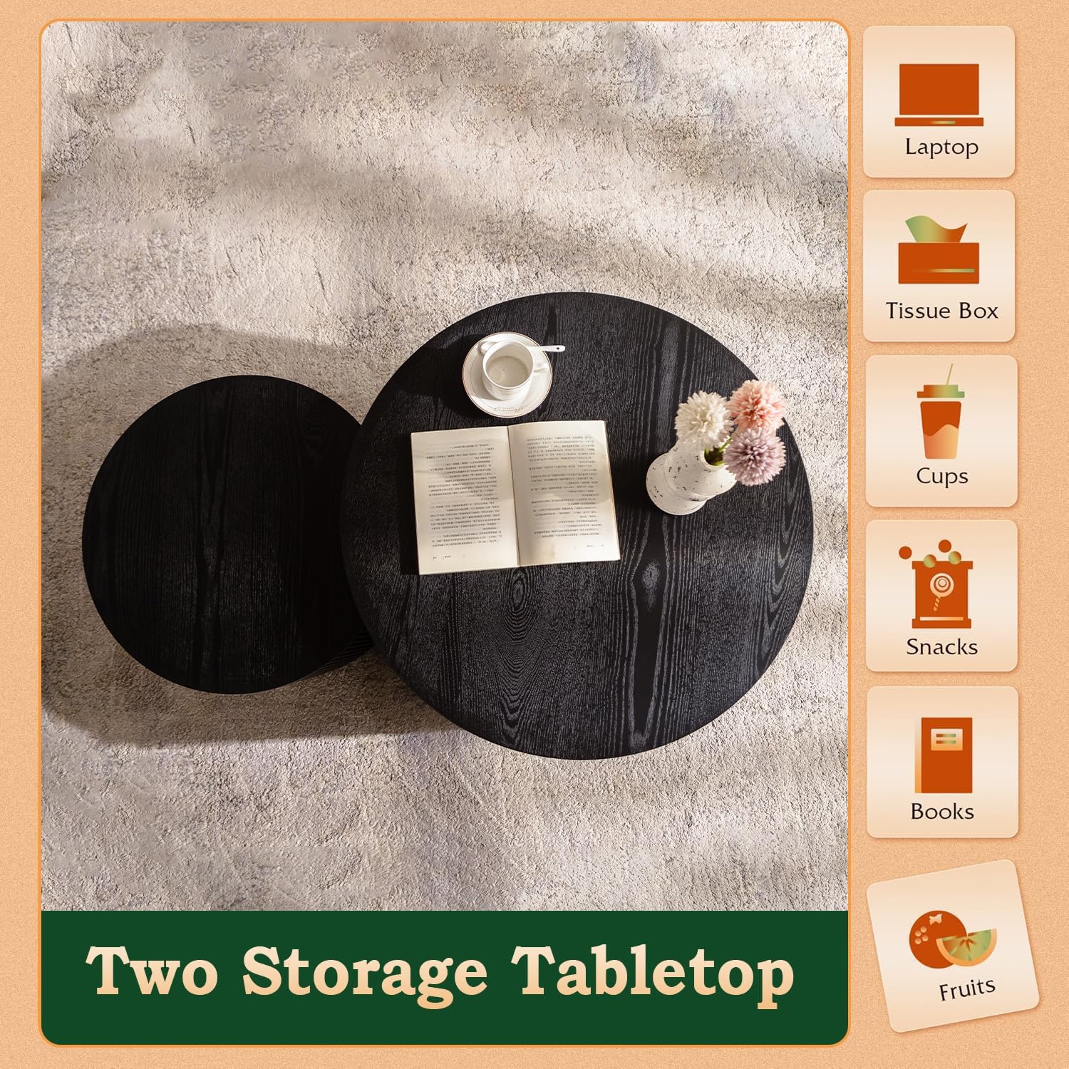- Space-Saving Nesting Feature: Designed as a duo, the nesting coffee table round consists of one hollow large table and one solid smaller table. The smaller table conveniently fits under the larger one, optimizing space while offering flexible functionality. No assembly is needed—just unpack and use immediately.