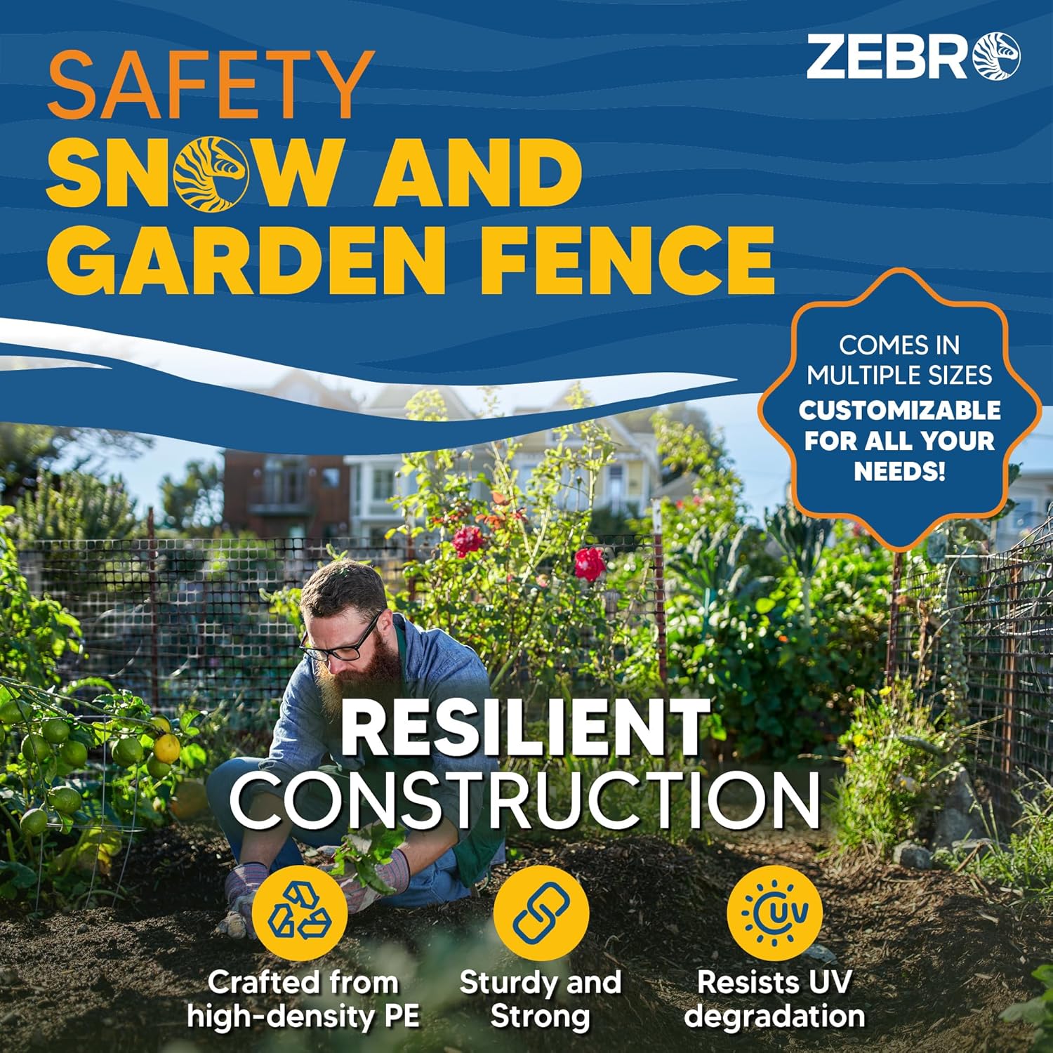 ZEBRO 4' x 50' Black Plastic Garden Fence Roll – Light Duty Mesh Fencing for Temporary Fence, Snow, Garden Netting, Animal Barrier, Agricultural Fencing & Lawn Protection