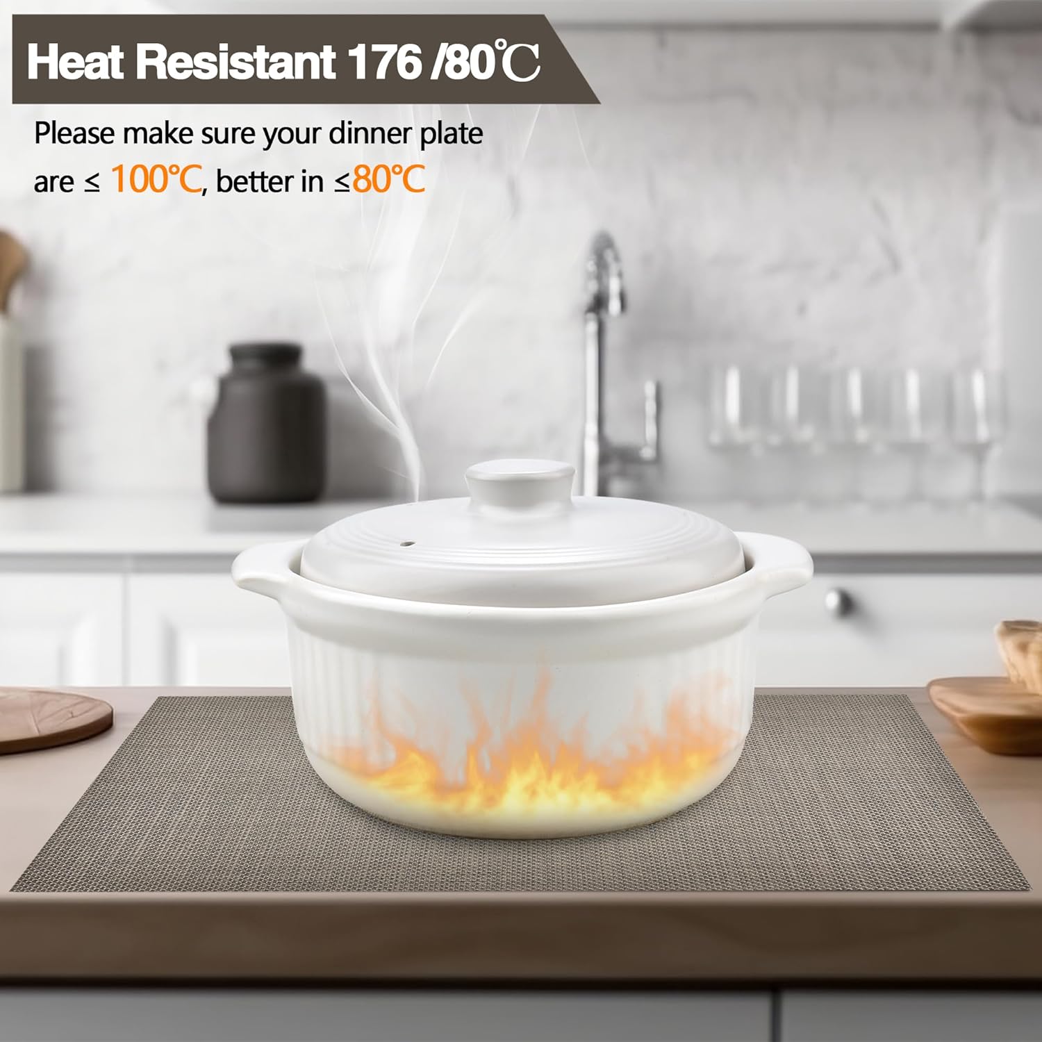 - Heat Resistant: Please make sure your dinner plate are β€ 100β, better in β€80β. It can prevent the table from slipping and scalding the countertop. These beautiful stylish vinyl place mats to add more fun to your dining table