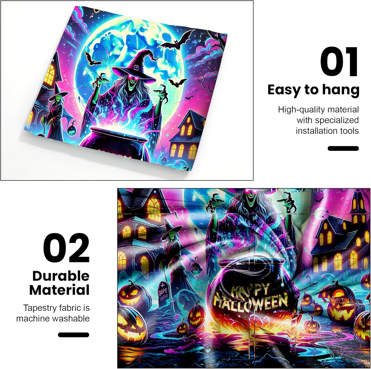 - 【Durable & Versatile】Made from premium polyester, this lightweight yet durable fabric works as wall art, a curtain, tablecloth, or photo backdrop for unforgettable Halloween moments.