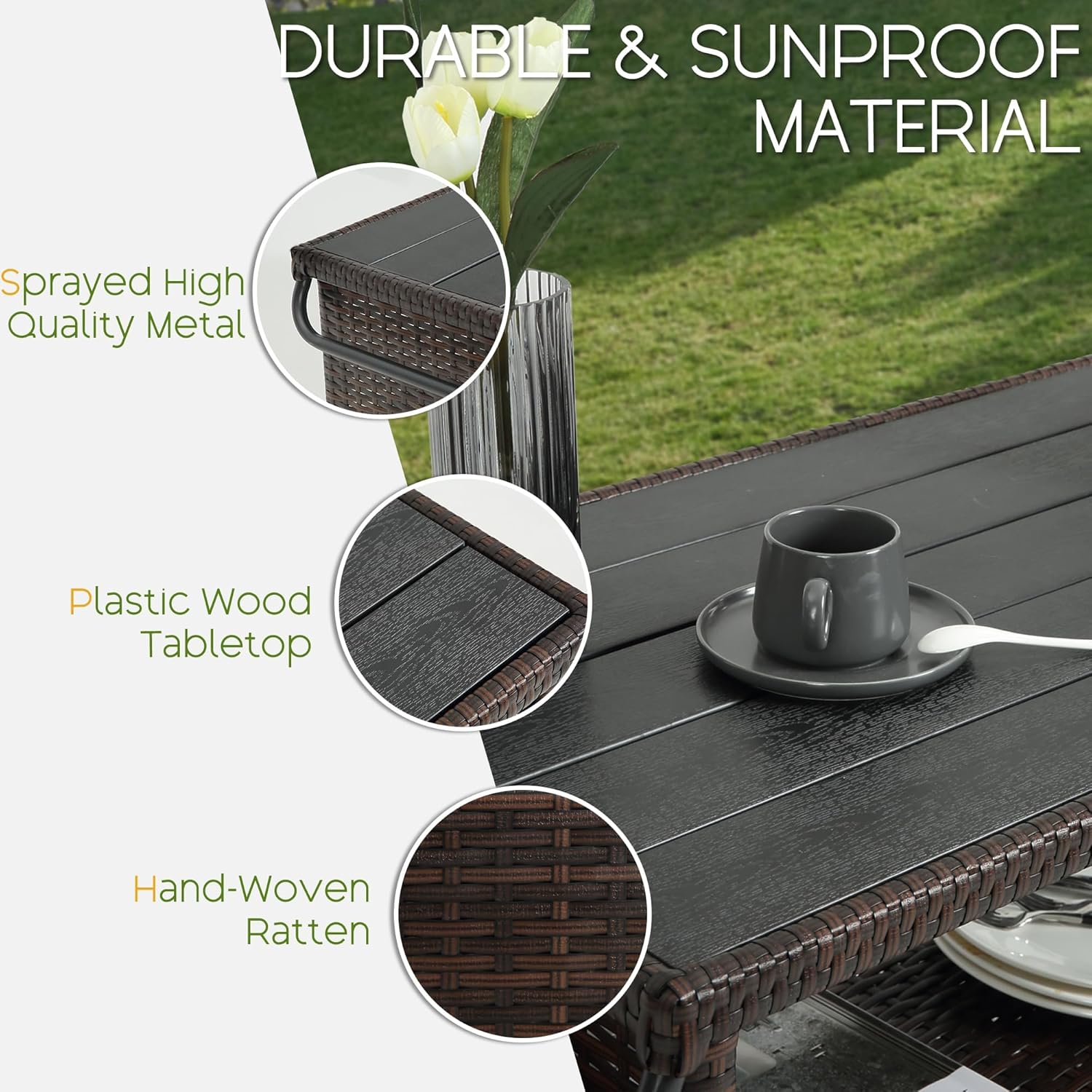 - PLASTIC WOOD TABLETOP: The backyard bar features a high-quality plastic wood tabletop; the baffle swivels to create two shelves for additional storage space; and can be cleaned with a simple wipe down