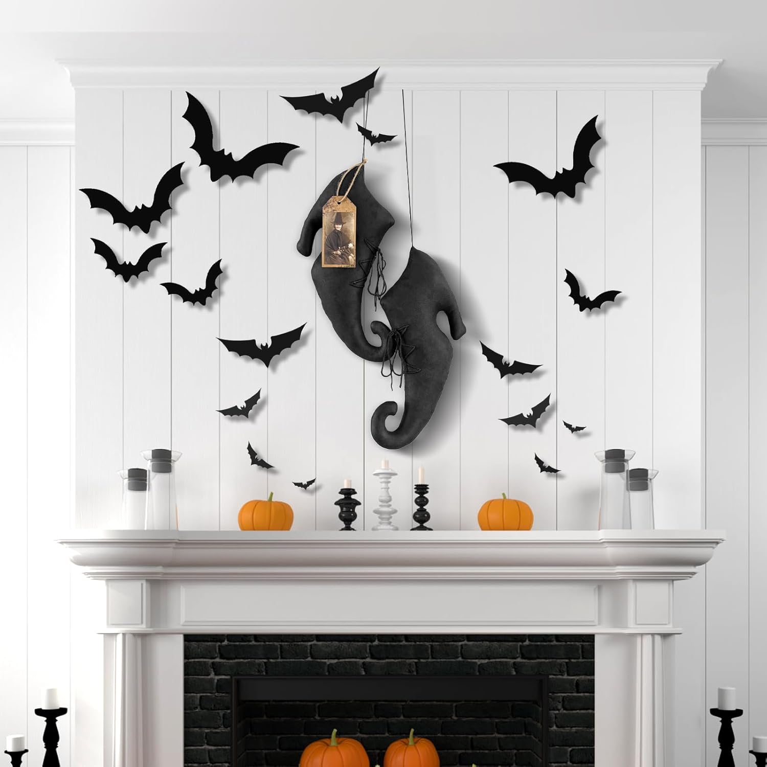 - Package: Includes a pair of Halloween witch shoe decoration ornaments, and a vintage style witch tag