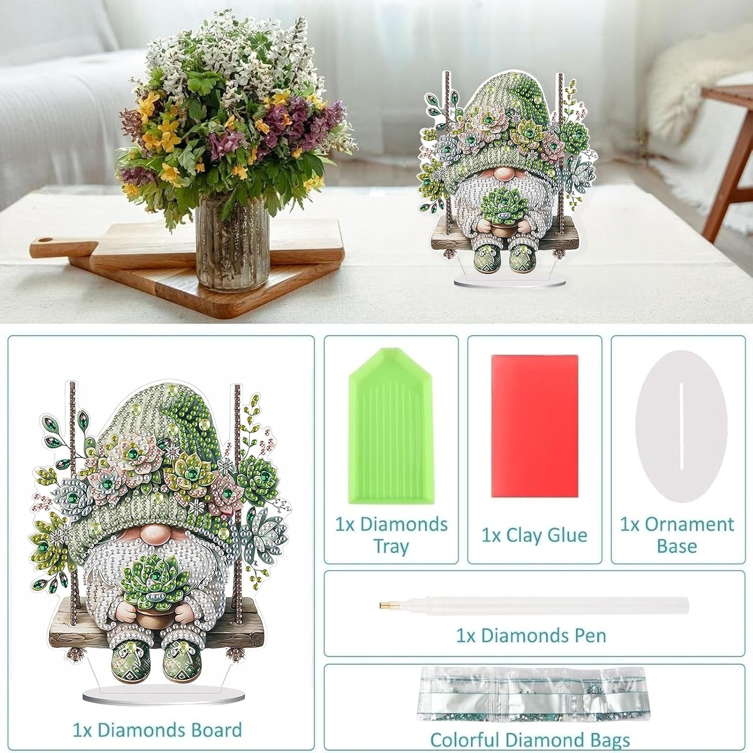 Diamond Painting Kits for Adults Beginners, 5D Full Drill Dwarf Succulents Crystal Art Desktop Ornament, DIY Single Sided Home Office Desk Decor, Creative Craft Gift Set with Tools