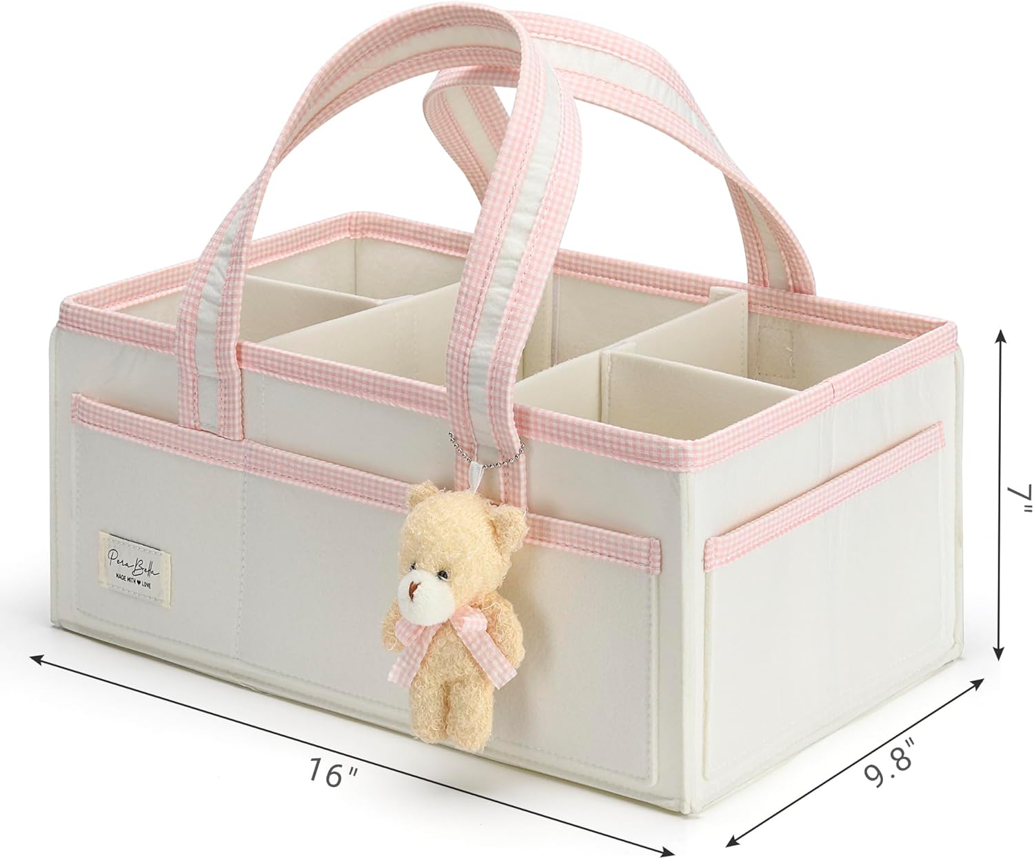 PeraBella XL Diaper Caddy Organizer With Handle, Baby Shower Gifts Basket Bag, Registry Search Must Haves Items, Newborn Girl Boy Nursery Storage Organizer, Baby Bag Essentials, Car Diaper Caddy Cart