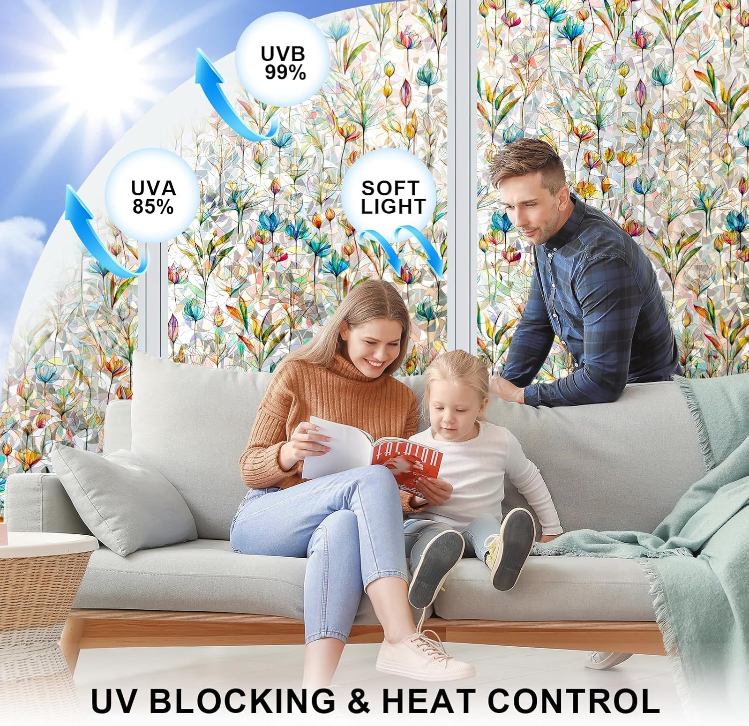 - 【UV Rejection & Heat Control】Stained glass window film made of premium vinyl material can blocks up to 85% of UV. Not affecting natural light and effectively reducing glare. It allows you to enjoy a cooler and more comfortable indoor environment with privacy window film, while slowing down furniture fading and skin damage