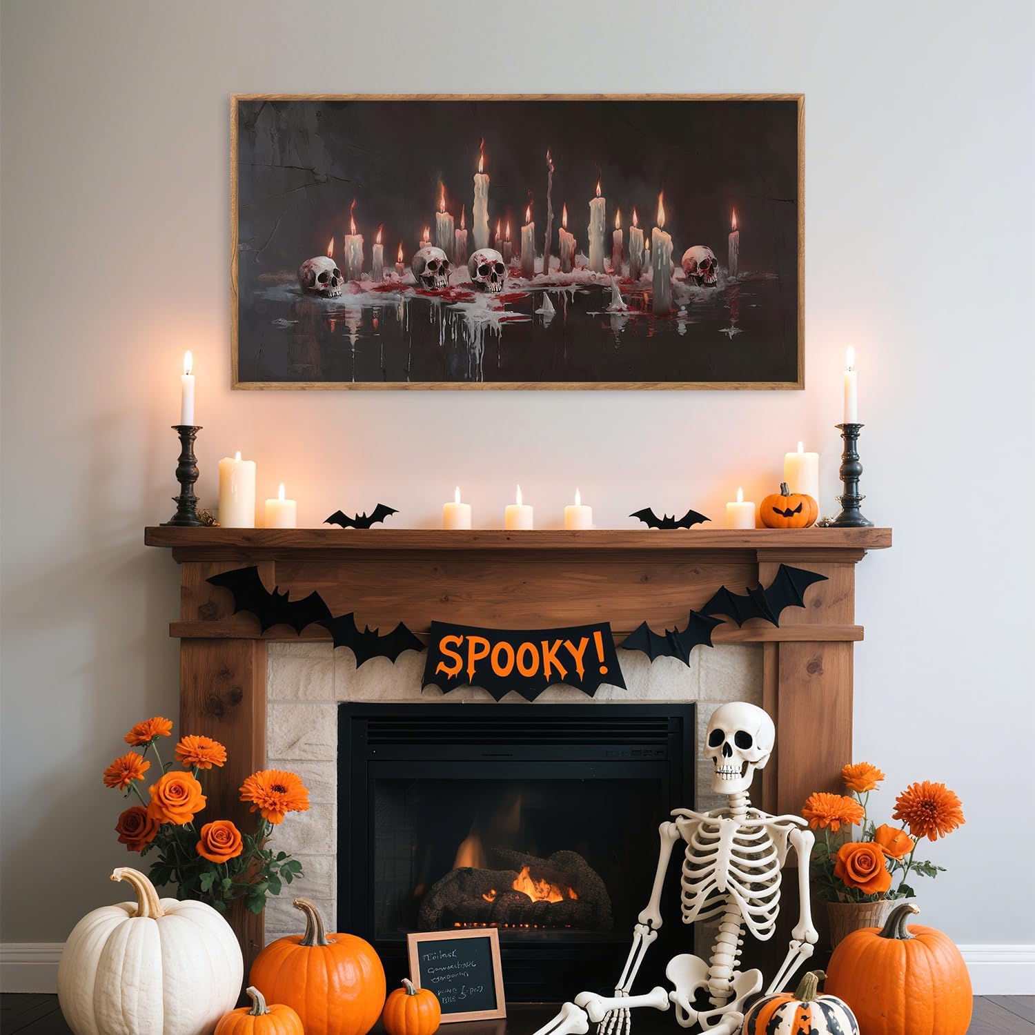 - Gothic Bloody Skull and Candles-- The details of Aurlan halloween wall art framed are exquisitely processed, such as the melted wax on the candles, the reflections and bloodstains in the liquid. The overall image gives people a sense of horror, mystery, and religious rituals.