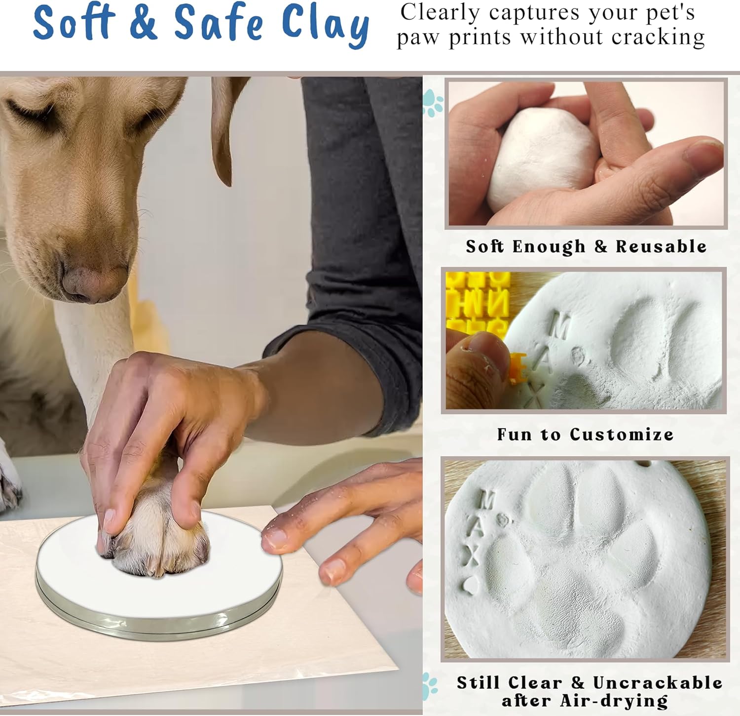 - { Safe, Soft & Mess-Free } Our pet-safe clay and ink pads are specially designed for pets,dogs and cats.Soft clay for clear imprints with just a little force press—even for older pets,kittens,and puppies. Ink pad is clean touch.Pets press the inkless side and their paw prints will instantly show up on papers or round pieces. No paw cleanup needed after use! (clay paw print kit,ink pad for dog paw prints)