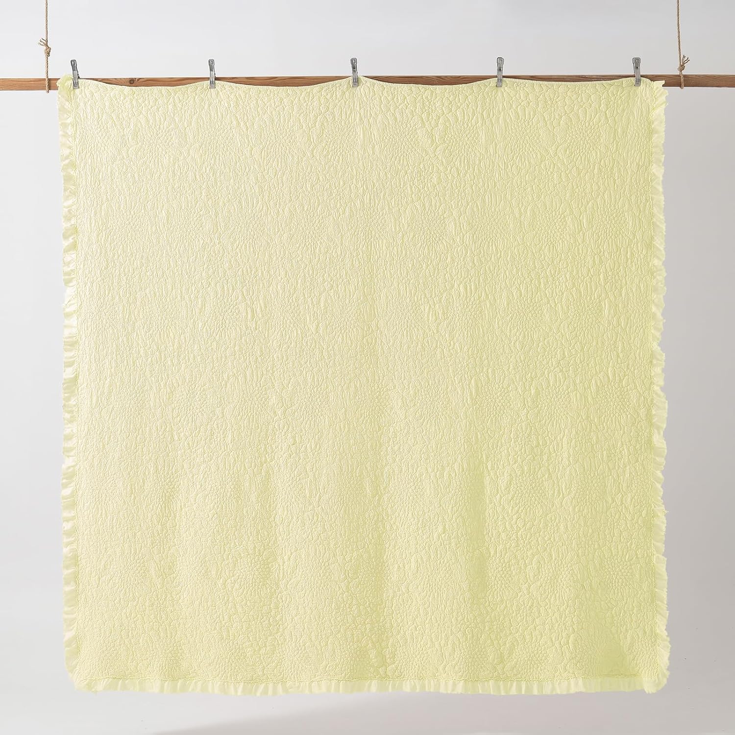 Light Yellow Ruffled Quilt Twin Size, Stone-Washed Microfiber Lightweight Crinkled Farmhouse Rustic Shabby Chic Bedding Set, 2 Pieces Reversible Bedspread with Pillow Sham for All Season