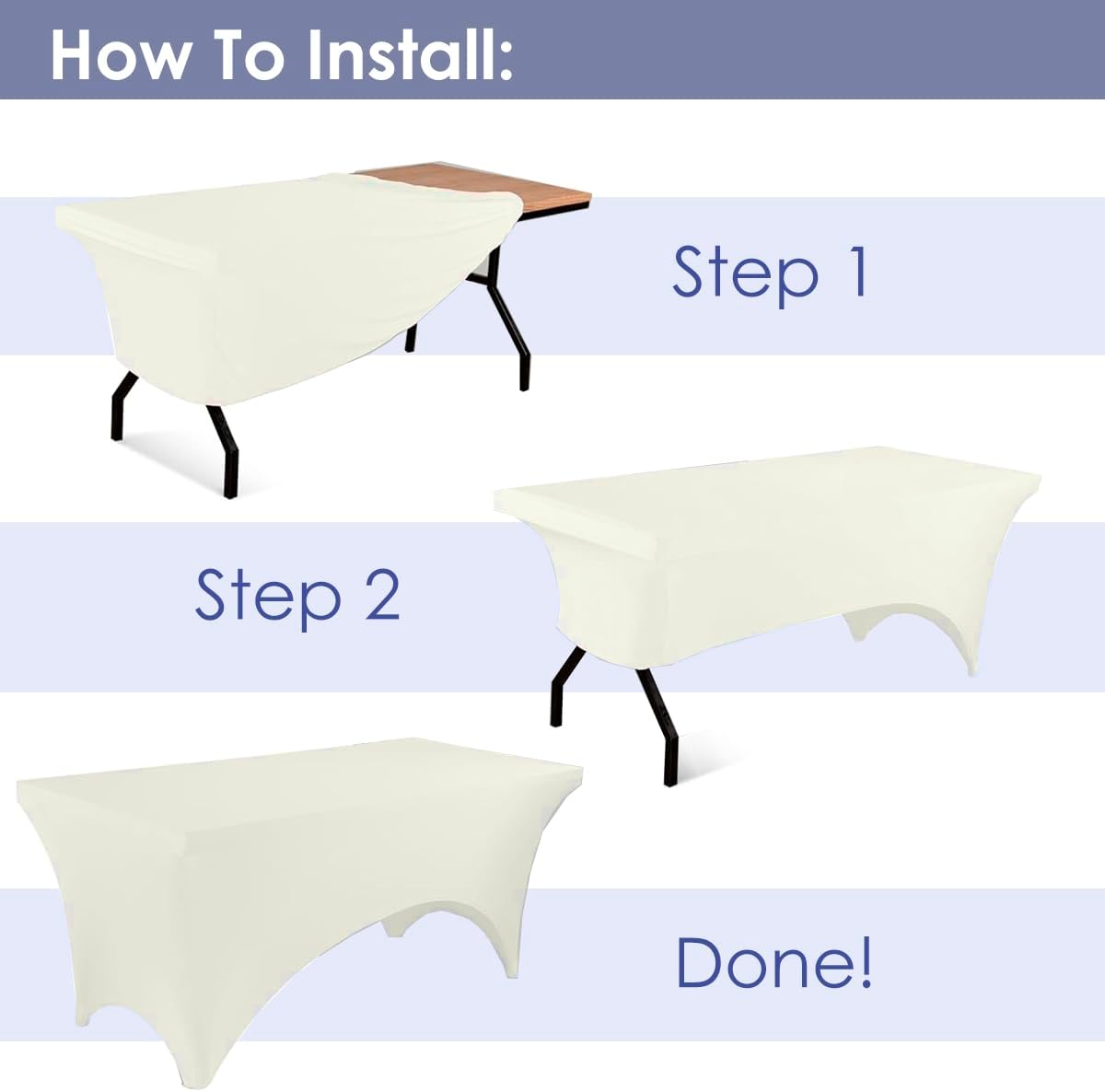 Craft And Party 2 Pack 8ft Ivory Spandex Tablecloth – Fitted Stretch Cover – Universal Fit for Folding Tables – Wrinkle-Free, Washable – Ideal for Parties, Weddings, Events