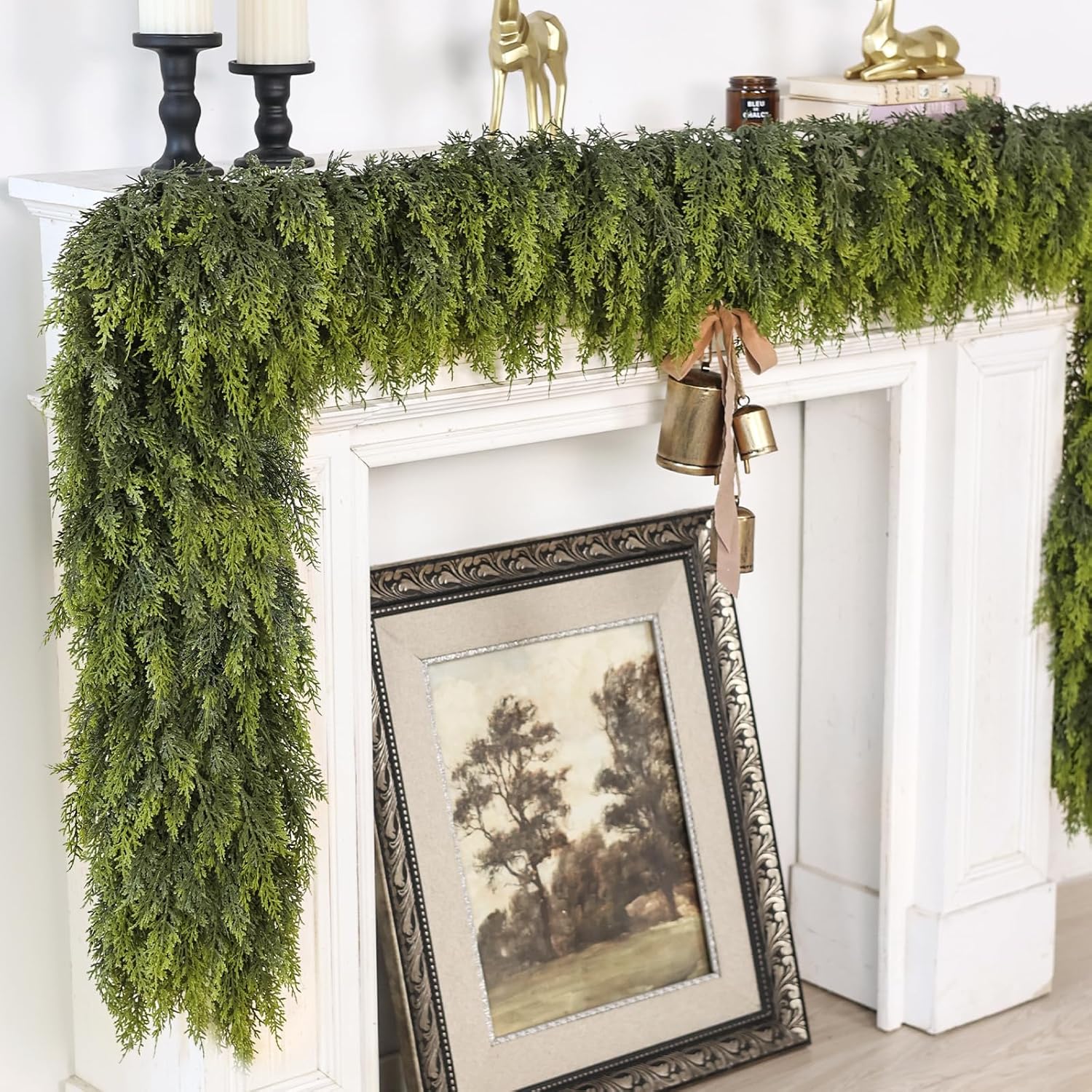 - [Quantity and Size]:The package includes 1 piece of artificial cedar garland, approximately 6 feet in length, which is perfect for decorating fireplace.