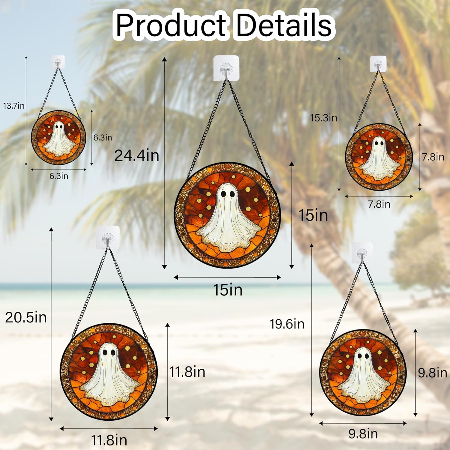 Stained Glass Window Hanging - Halloween Decorations White Ghost Suncatcher for Doors Garden Indoor Spooky Funny Orange Sun Catchers Gothic Decor Horror Gifts for Women Men Friend 7.8 in