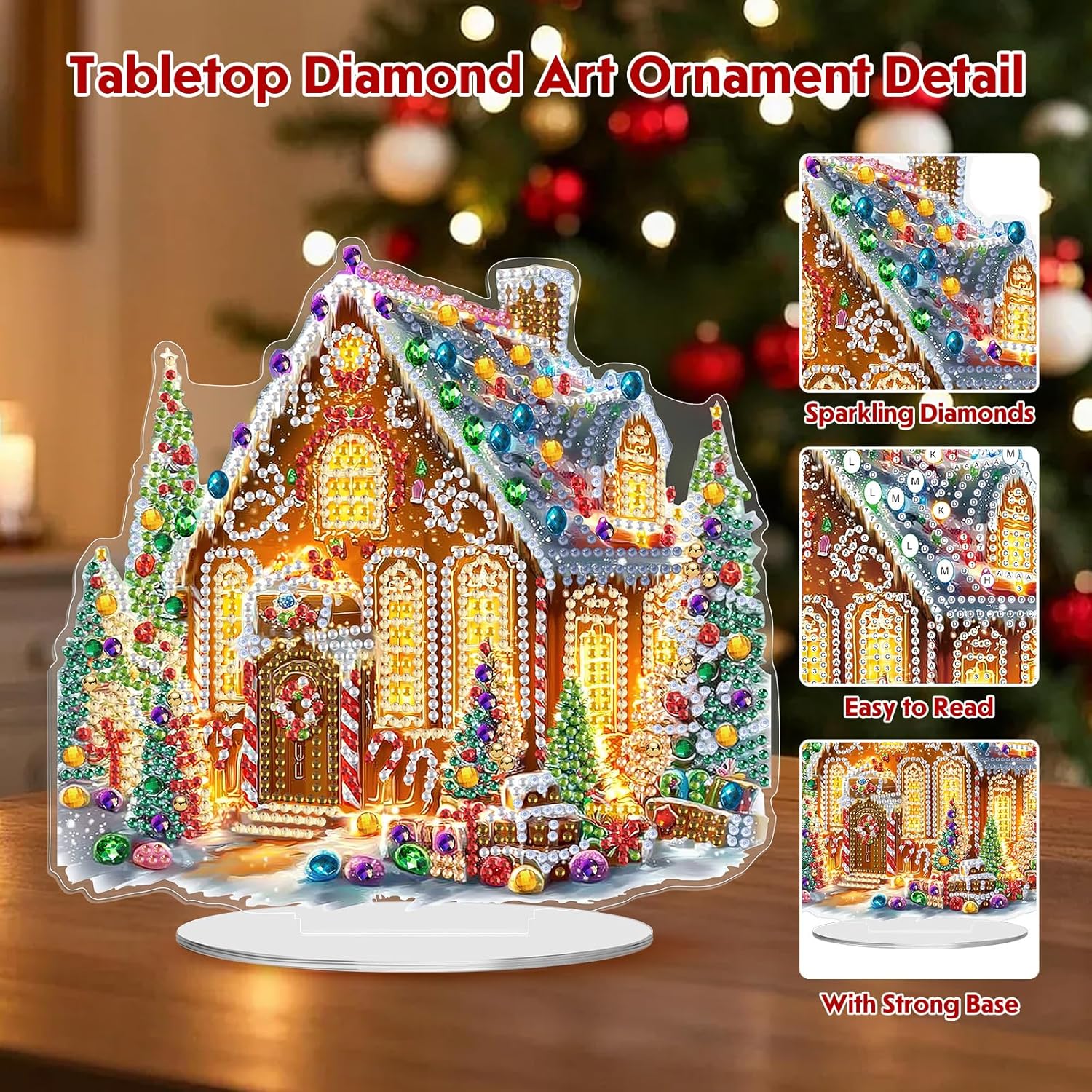 MEIYUDA Christmas Diamond Art Tabletop Kits, Christmas House Diamond Art Painting Desktop Ornaments for Adult, DIY Special Shaped Crystal Desk Placement Ornament for Home Office Decor Crafts Gift