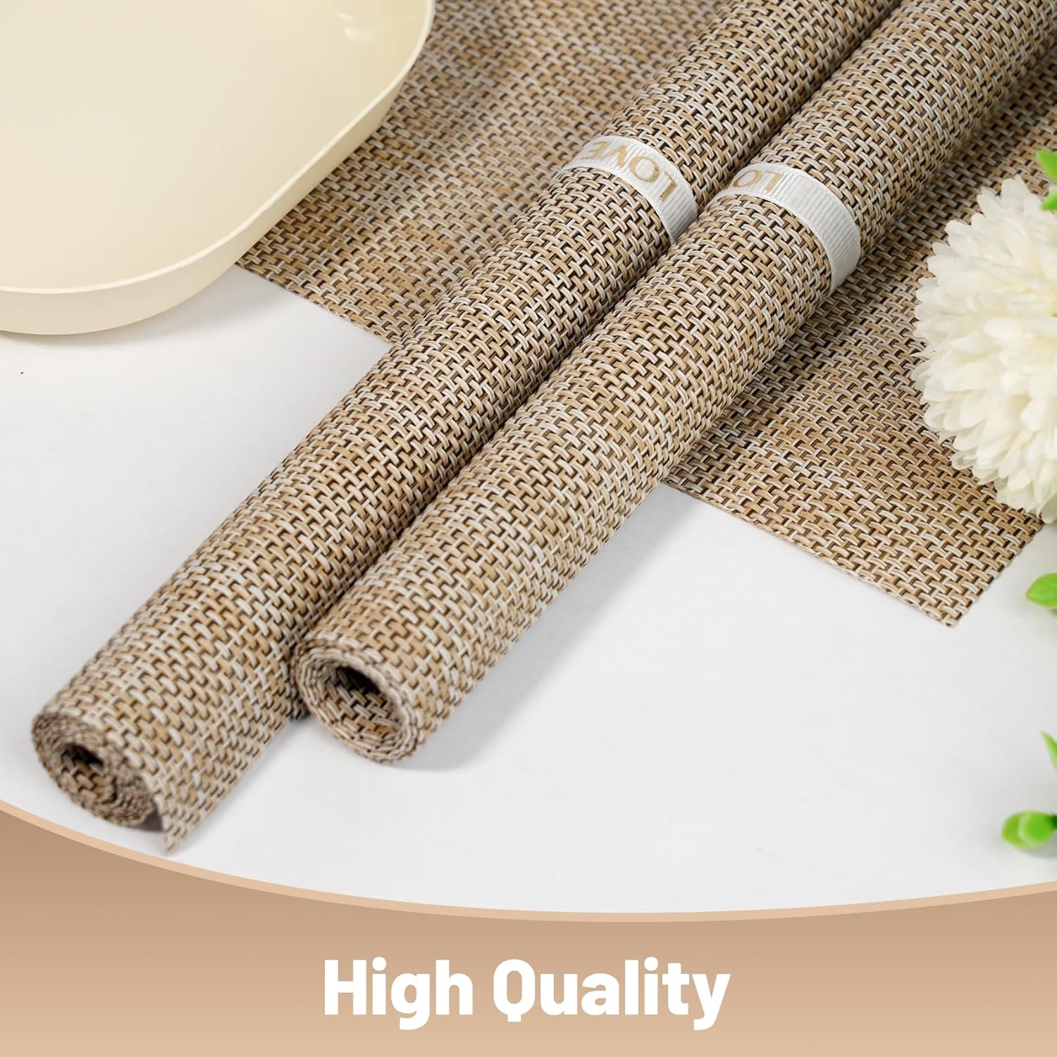 - 【High-quality Material】——Our placemats are made of 70% PVC and 30% polyester,placemats effective heat resistance of approximately 212°F(100℃) making them both durable that are protect your dining table while making mealtime more enjoyable.