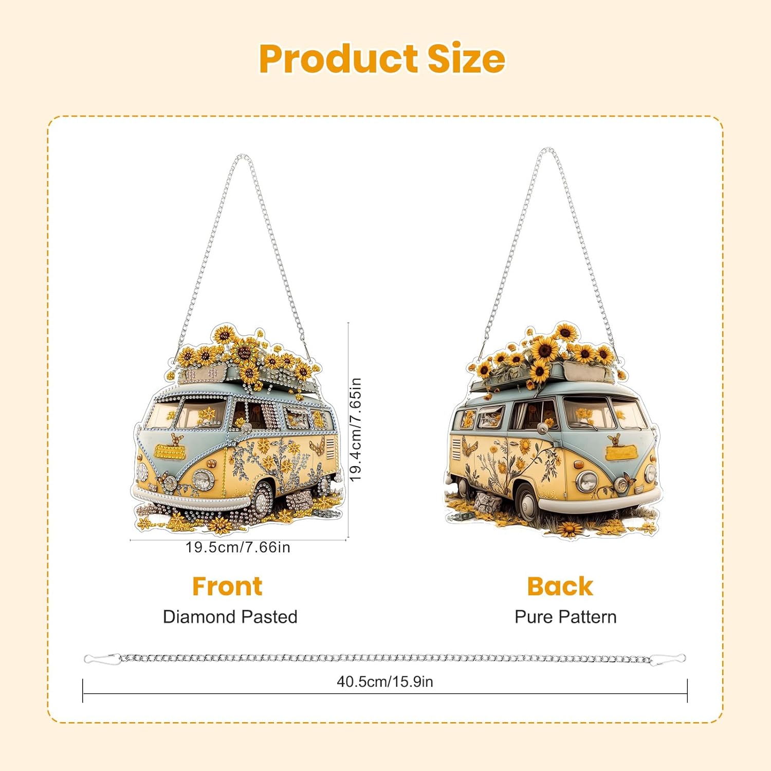 EOBROMD Diamond Hanging Art Kits for Adults, Travel Bus Suncatcher Diamond Art Painting, DIY Special Shaped Rhinestone Kits for Adults, Window Pendants Home Garden Wall Hanging Ornament