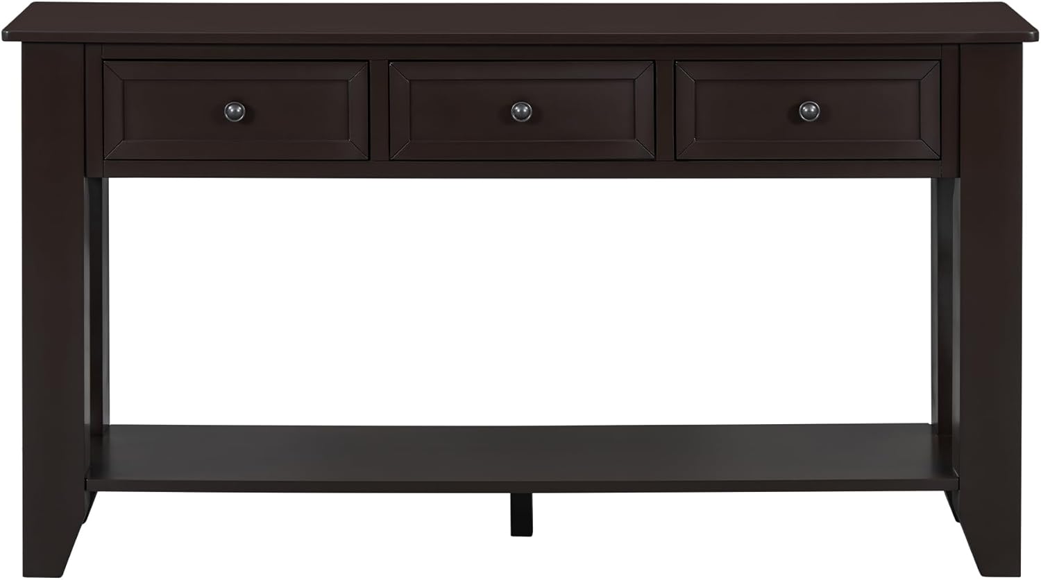 Farmhouse Modern Console Table 55.4-Inch Entryway Sofa Table with Drawers & Storage Shelf for Living Room Hallway Entrance, Dark Coffee