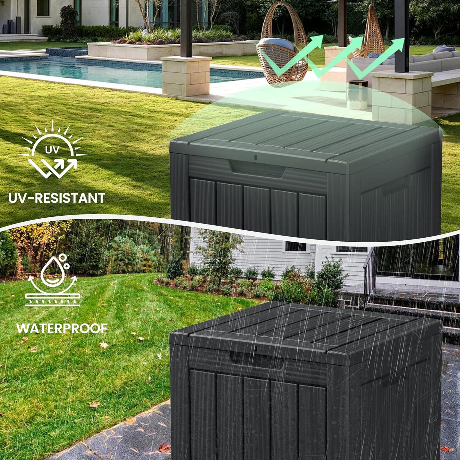 - Aesthetic and Practical: The charming wood grain effect adds a natural aesthetic appeal. UV-resistant and weather-proof, it ensures that items inside remain dry and ventilated, suitable for all outdoor conditions