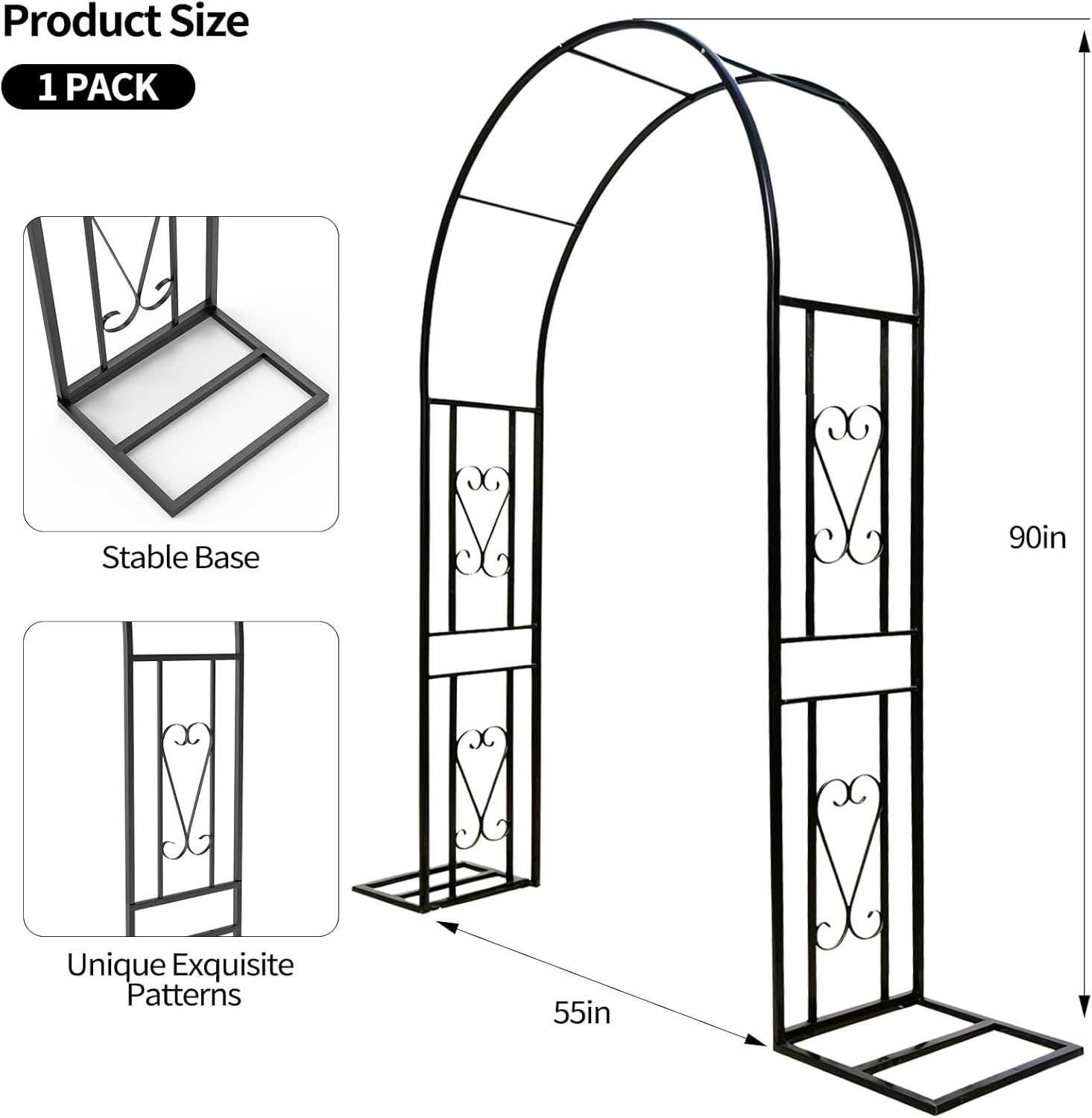 Metal Garden Arch, Heavy Duty Garden Trellis for Climbing Plants, with Enlarged Base for Stability, for Wedding Garden Arch & Bridal Party Decoration, 1 Pack