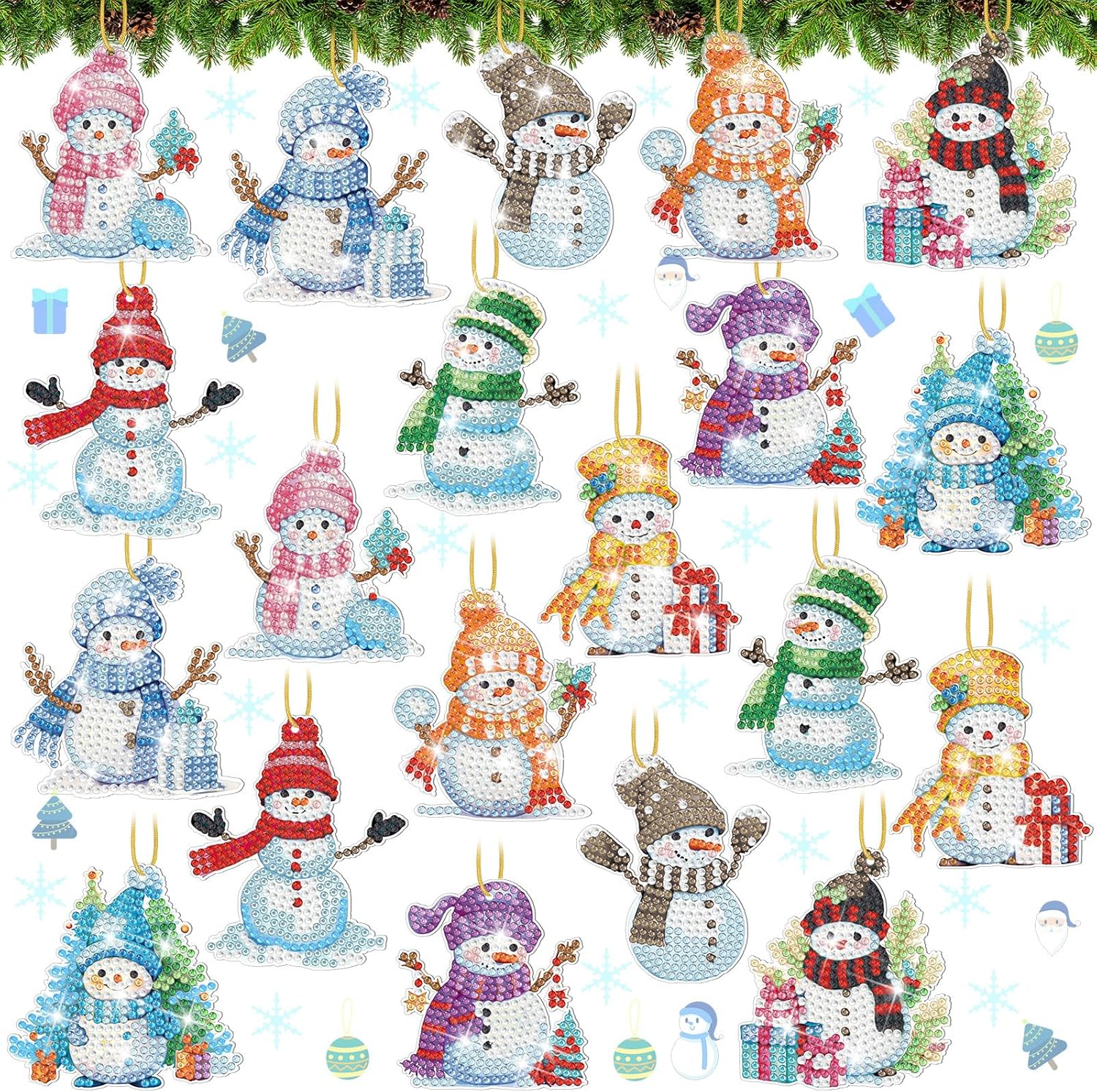 Skylety 20 Pcs Christmas Diamond Art Ornaments Kit Cute Snowman Diamond Painting Ornaments Tag DIY Xmas Rhinestone Art Keychain Crystal Handcraft Gift Wrap Tags with Rope Home Party Decor(Colorful)