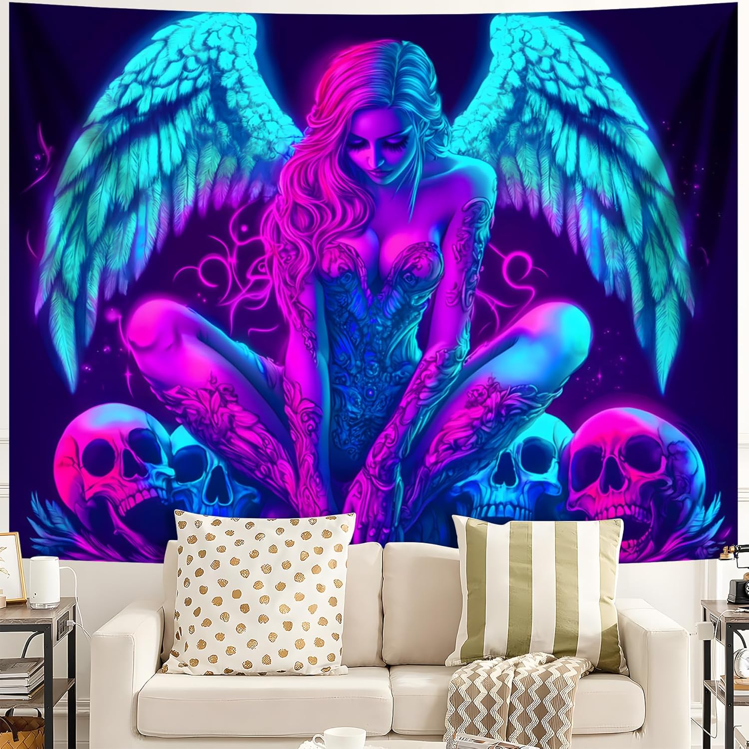 Blacklight Tapestry,WingTapestry Glow In The Dark,UV Reactive Black Light Upright Posters Wall Hanging for Bedroom Dorm Living Room Backdrop Decor (wing15, 90L" x 70W")