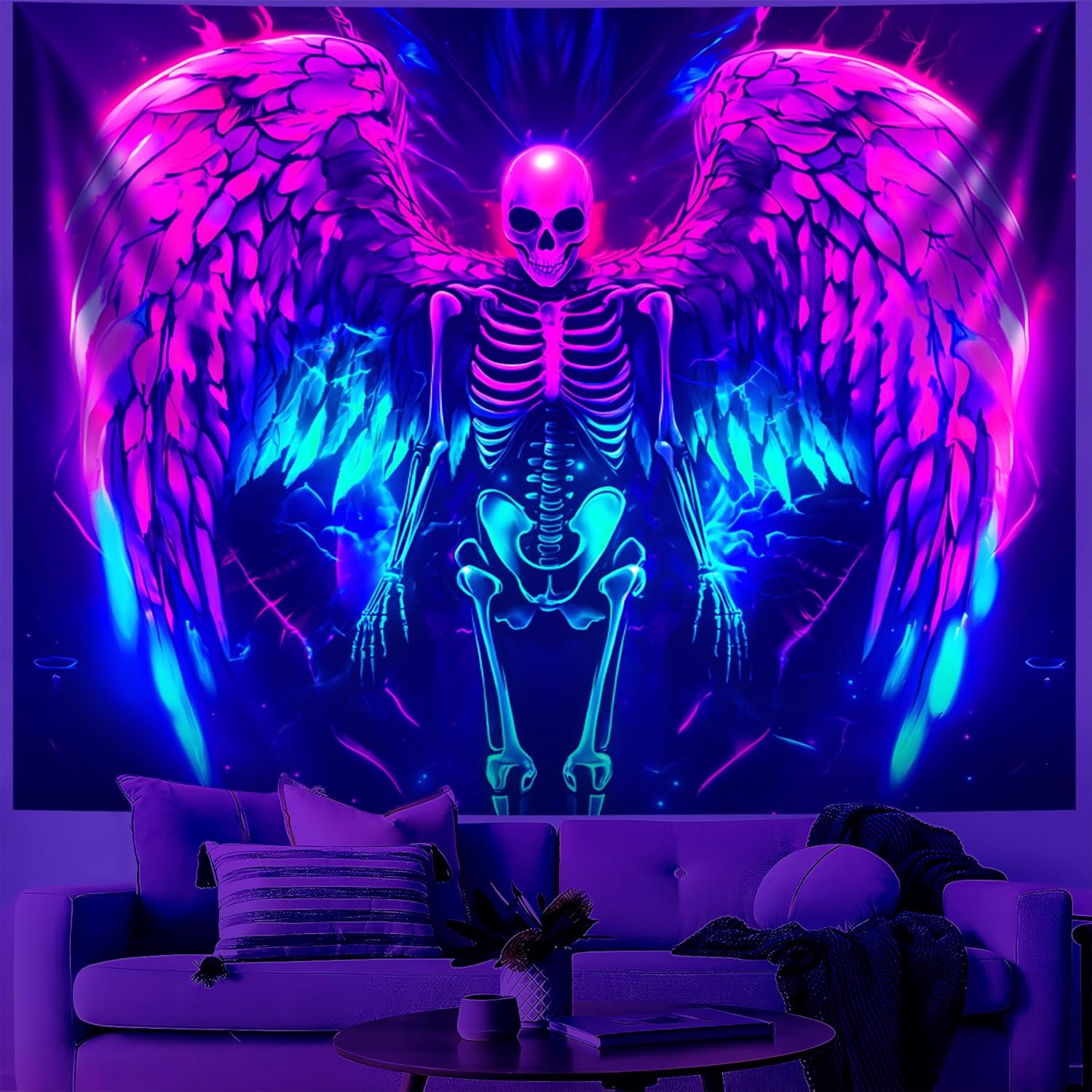 - 【Blacklight/UV Reactive】 Due to the special ink and advanced technology, the blacklight wing tapestry's colors can be changed under Black Light or UV Reactive Light. You can enjoy different effects by kinds of light, the tapestry will be amazing. Under normal light, the colors are also beautiful.