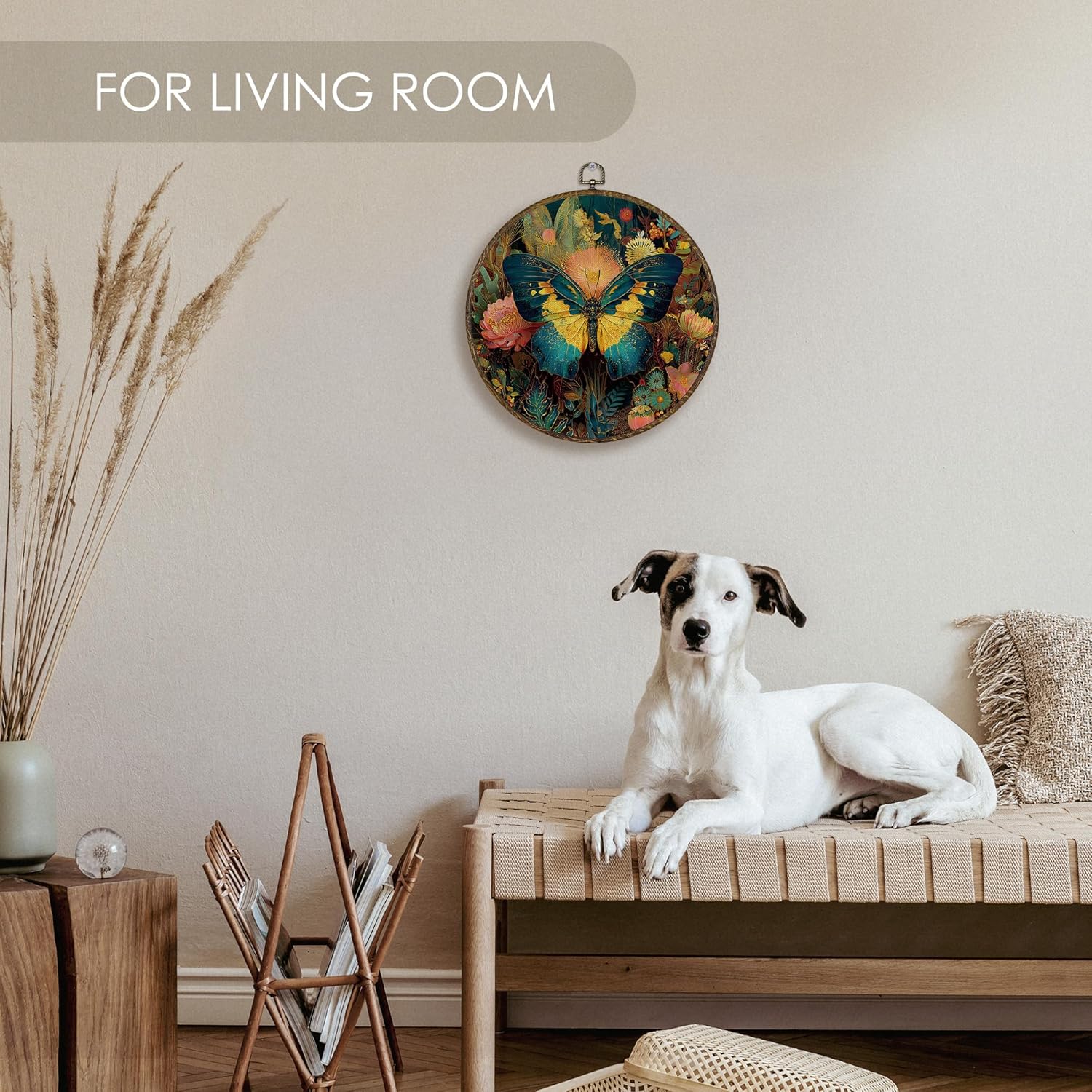 Fewgb Vintage Moody Butterfly Round Wall Art Decor Framed for Bedroom Living Room Bathroom, Dark Cottagecore Academia Canvas Wall Art Prints Picture, Gothic Hanging Room Decor Artwork 10x10