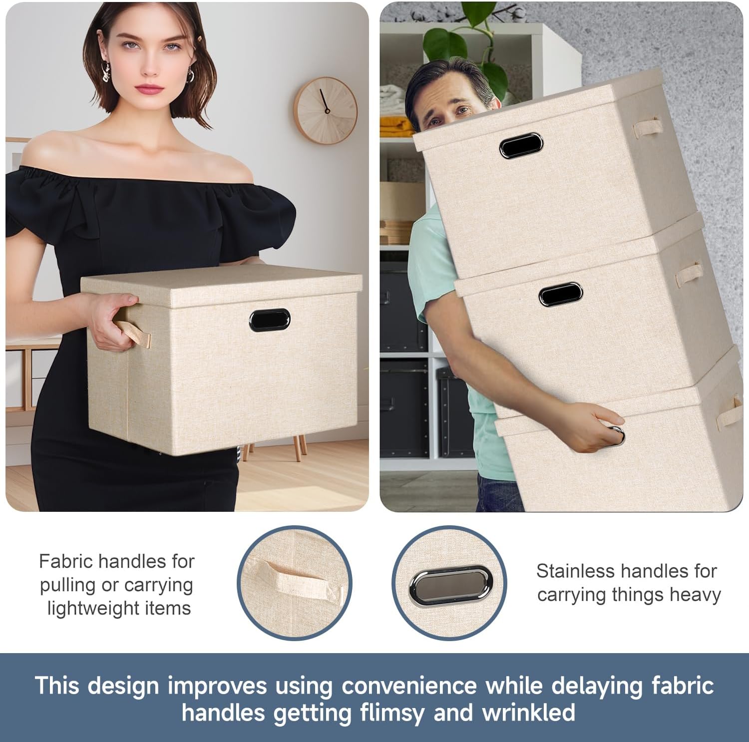 - ā [Constant Use] Covered by thick textured cloth, our large lidded storage bins prevent daily wears and tears. They can keep dust and bugs out also, avoiding dirt and musty smell. You can use these decorative storage boxes with lids everyday or for long term storage.