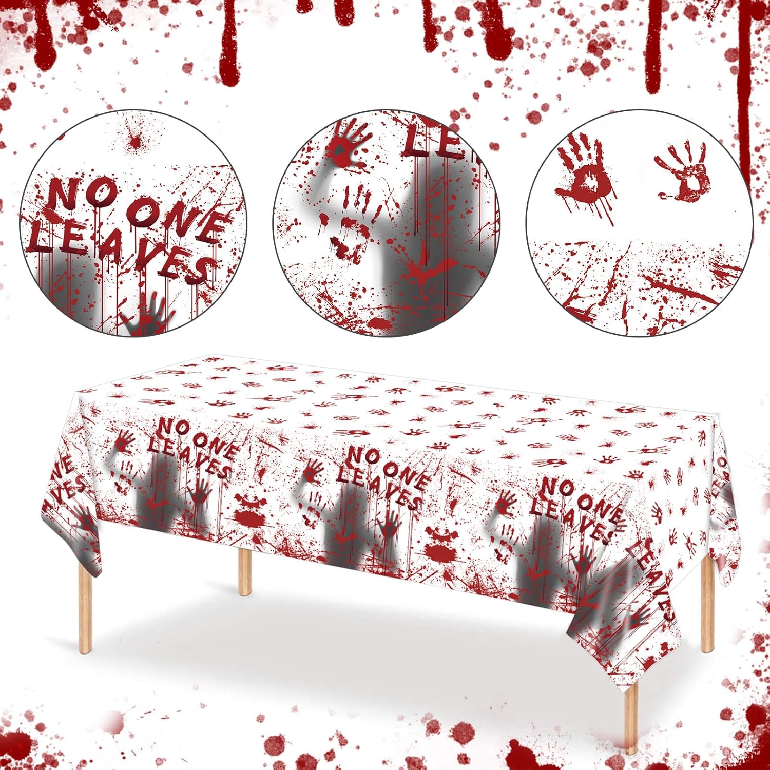 - 【Spooky Bloody Handprint Designs – 3-Pack】Elevate your Halloween decor with our tablecloths, each boasting a mix of spine-tingling and charming motifs: Blood handprints, blood stains, terrifying portraits. These designs strike the perfect balance between spooky and festive, instantly transforming any space into a Halloween wonderland—ideal for parties, trick-or-treat setups, or family gatherings.