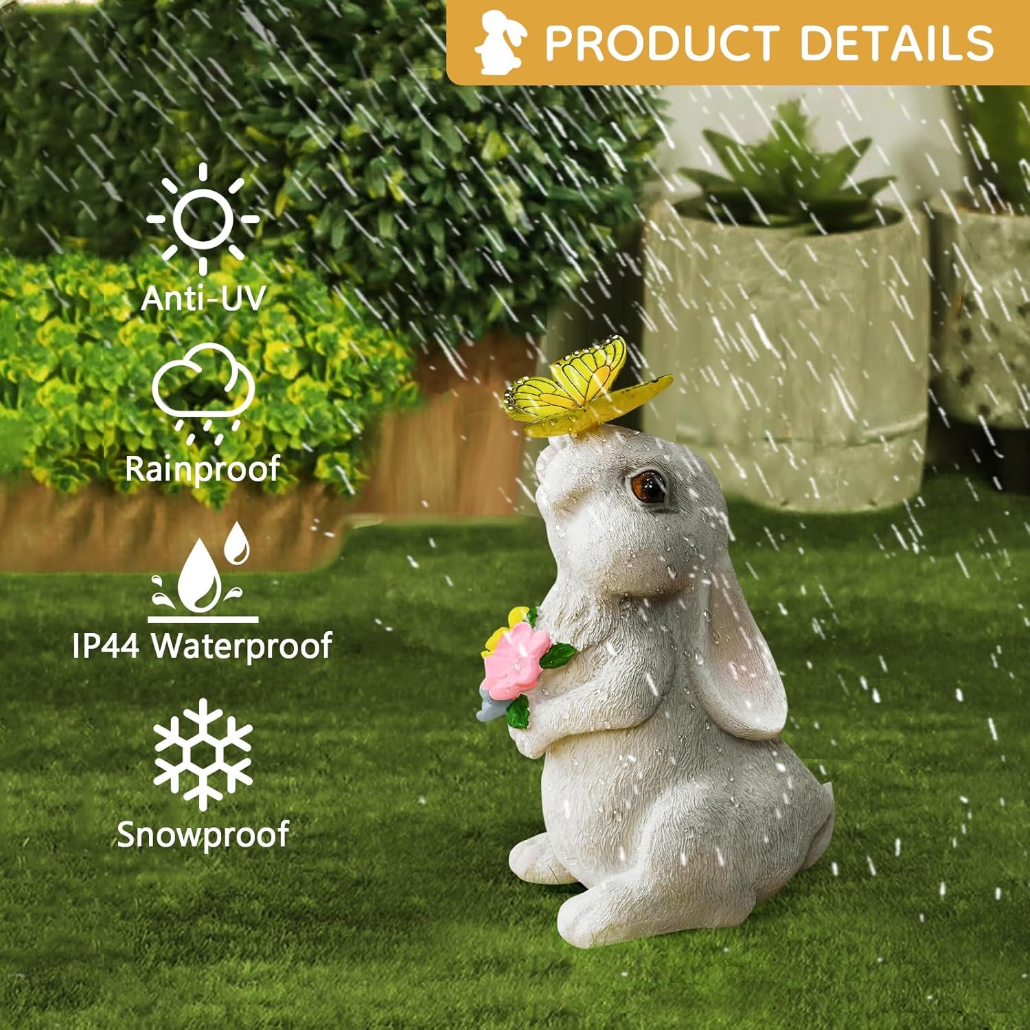 - ✨【 Magical Butterfly Light Show】 Watch this 8.7" bunny come alive with dancing butterfly projections at night! Solar-powered LEDs cast fluttering shadows on grass, creating fairy tale pathways. Auto-illuminates at dusk – no wires, just wonder!