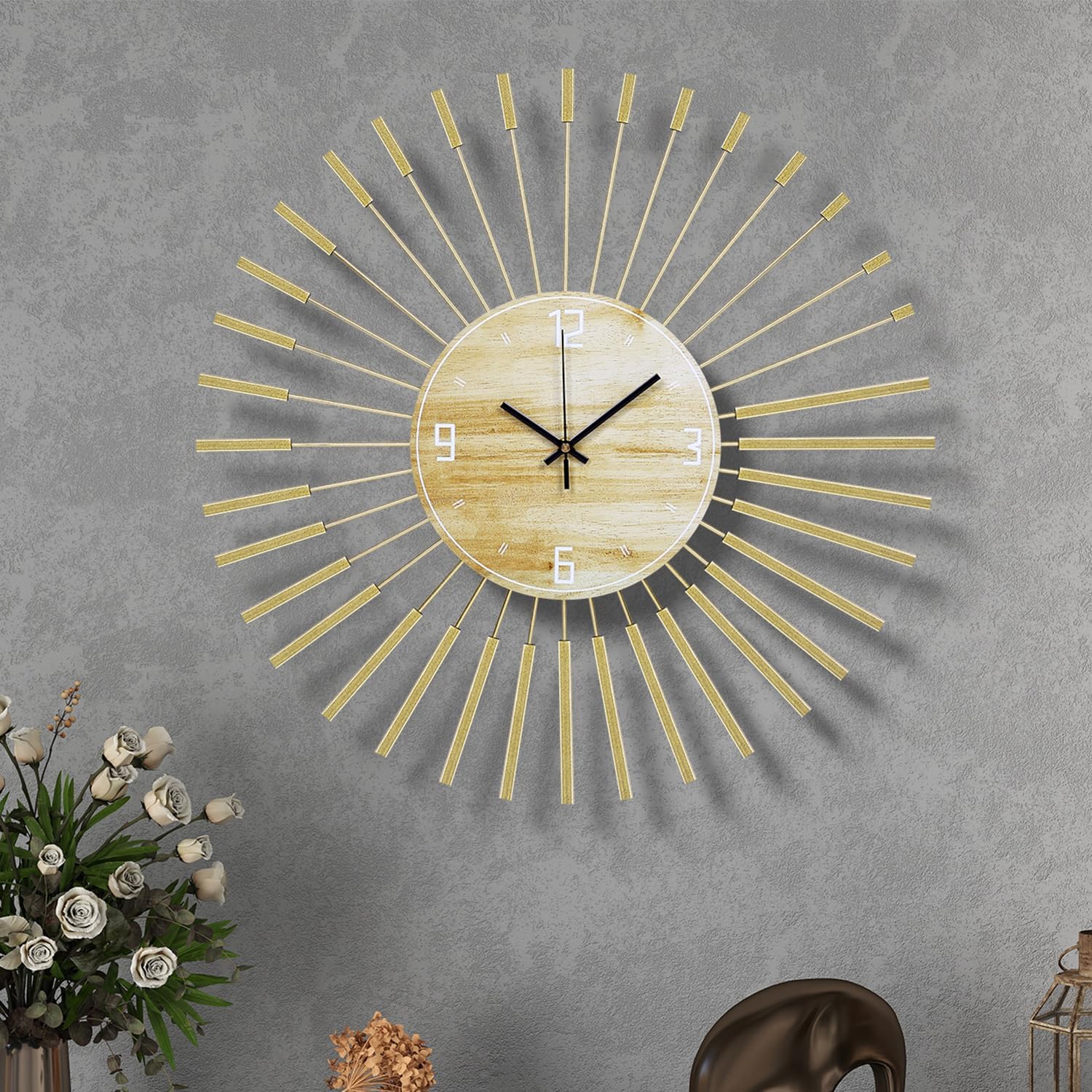 - Iron and Wood Combination Wall Clock – Designed with sturdy iron rays in a radiant sunburst , paired with a warm wood face for a stylish yet natural look.