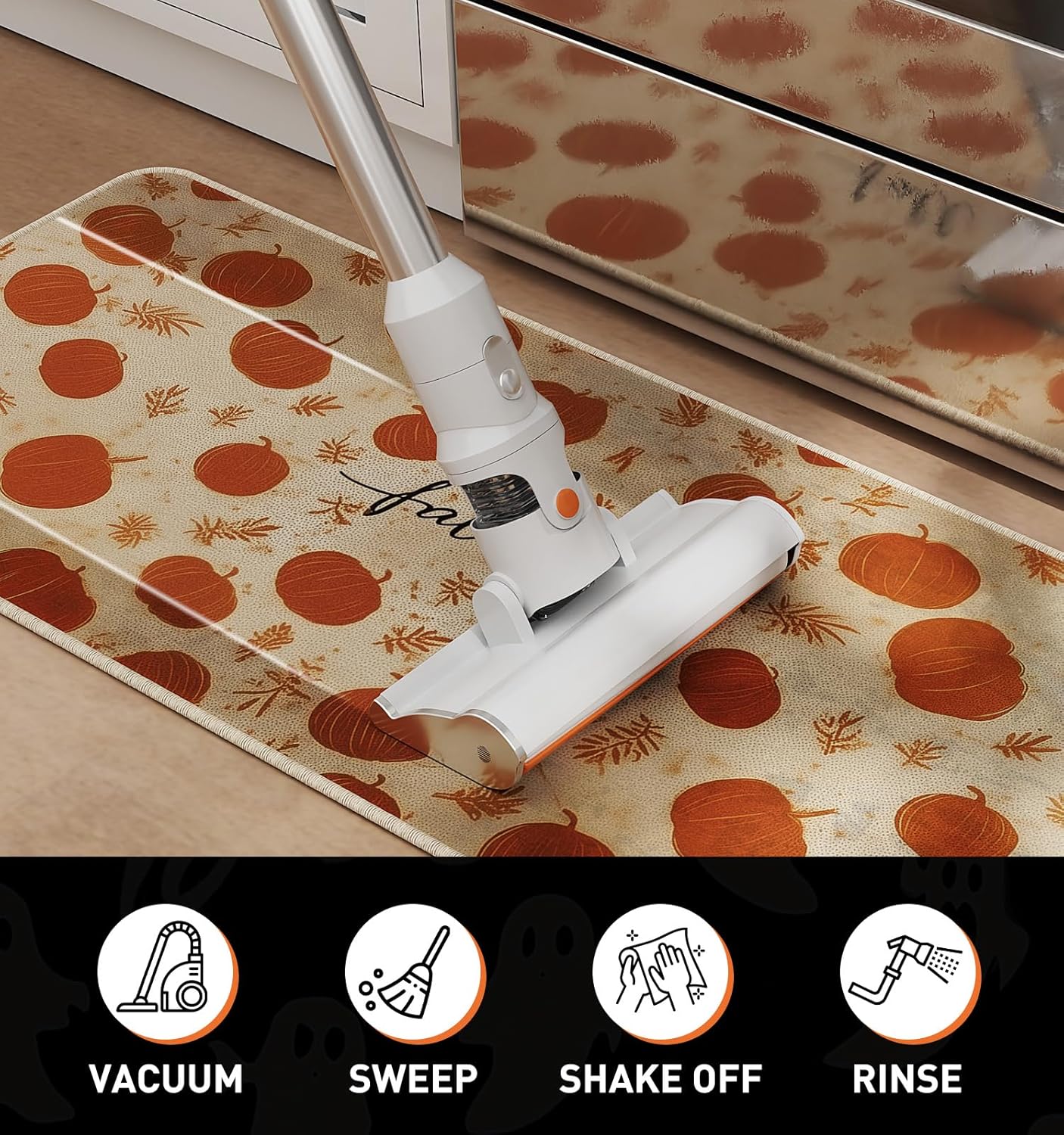 - 【Non-Slip Backing for Safety】Equipped with a non-slip rubber backing, the mat stays securely in place on smooth floors, preventing slips and trips while you cook, clean, or welcome guests,perfect for busy Halloween kitchens with frequent baking or party prep