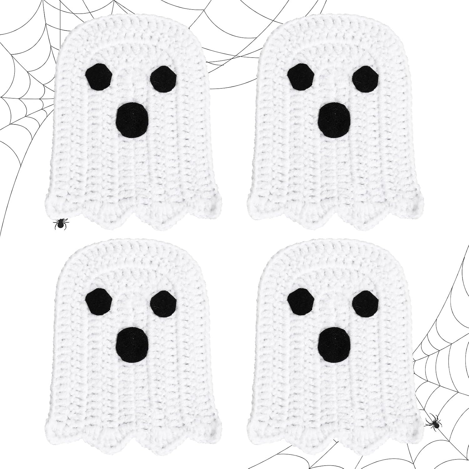 Whaline 4Pcs Halloween Ghost Coasters Handmade Crochet Drink Coasters Woven Fabric Cup Mat for Home Kitchen Party Table Decor