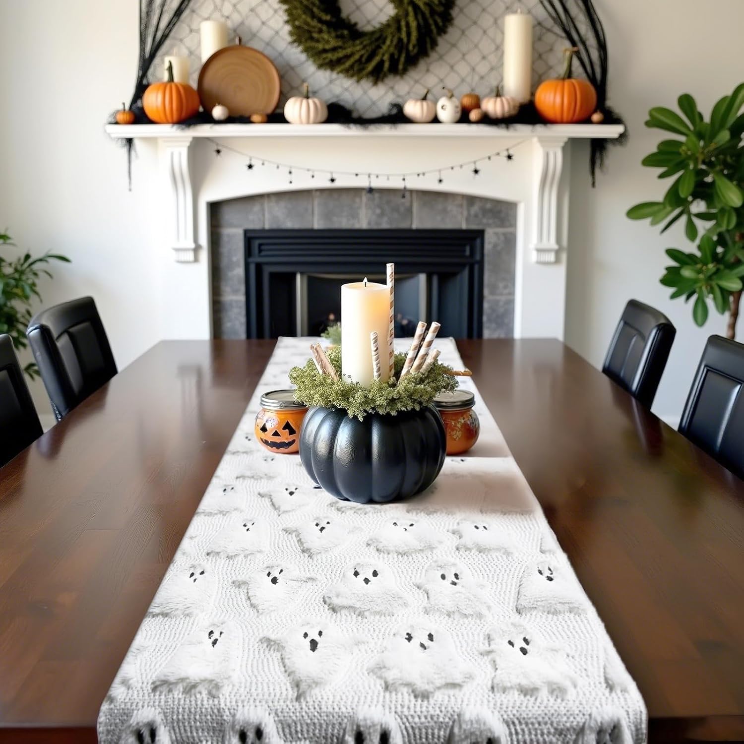 - Plush Feel:Made from soft faux fur with an intricate jacquard weave, halloween table runner offers a cozy yet high-end texture that instantly enhances the look of any seasonal gathering.Cute Halloween decor smooth surface and refined finish bring both comfort and elegance to dining rooms, kitchens, or event spaces.