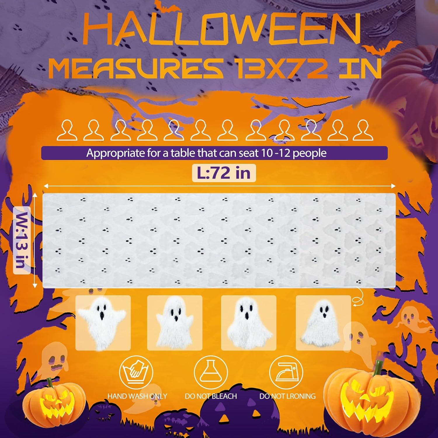 Halloween Table Runner Ghost Soft Plush Faux Fur Halloween Table Runner Hallowee Home Decor, Holiday Kitchen Dining Table Decoration for Home Party Decor 13x72 Inch
