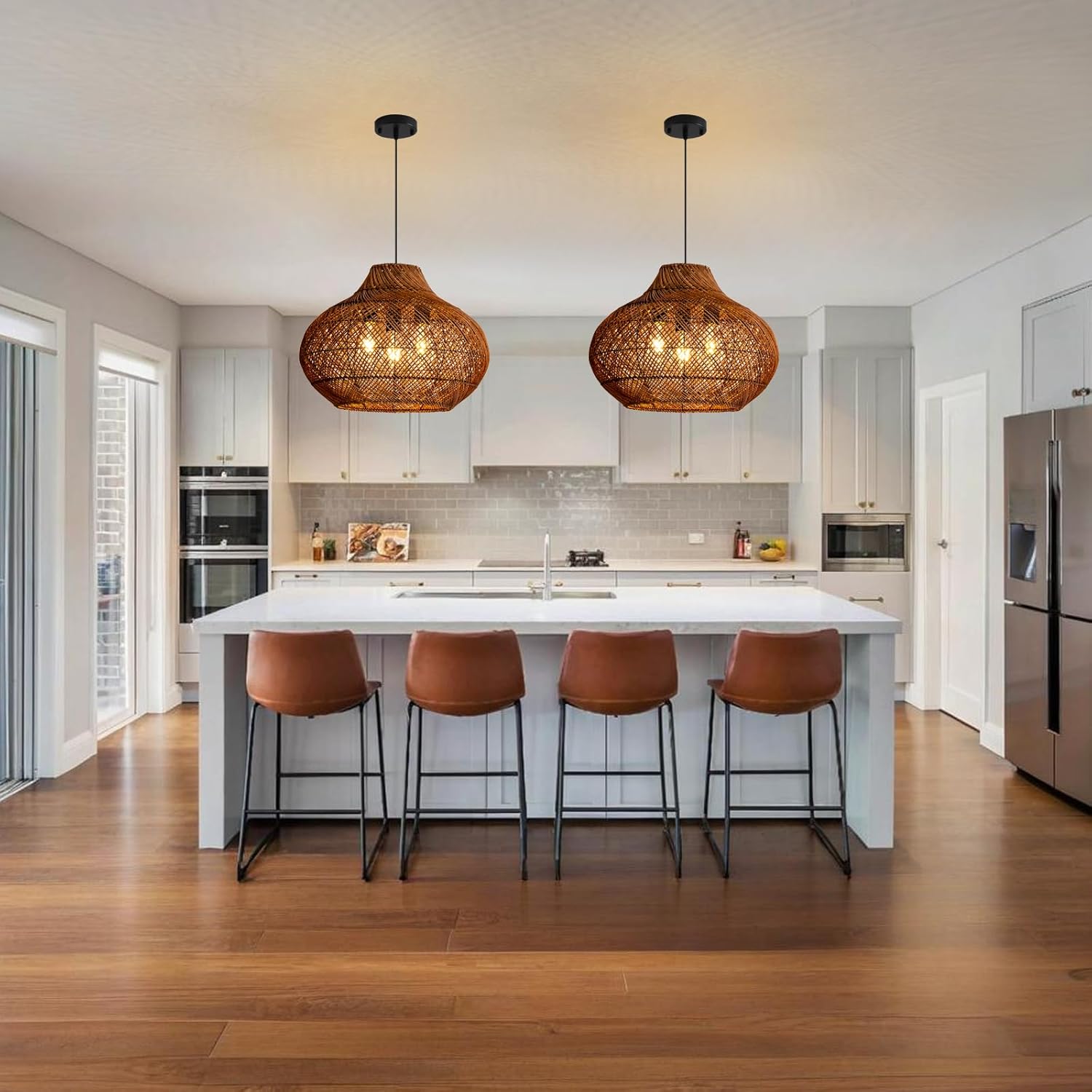 - 【Hand-Woven Rattan Chandelier Natural Material】Rattan craft is selected from the trees we grow , which undergoes various processing procedures. This Rattan craft is heat resistant, fade resistant, safe and healthy