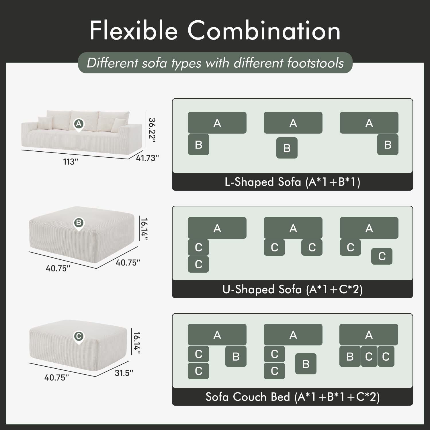 - Versatile Design for Everyday Living: More than just a sofa—this modular set balances style and functionality for busy households. Its compact footprint fits 3-4 people without overwhelming the room, while the separate pieces can be rearranged for movie nights, game days, or extra seating. Backed by high-quality construction, the sofa’s sturdy frame and fade-resistant fabric ensure long-lasting durability, making it a practical choice for any home.