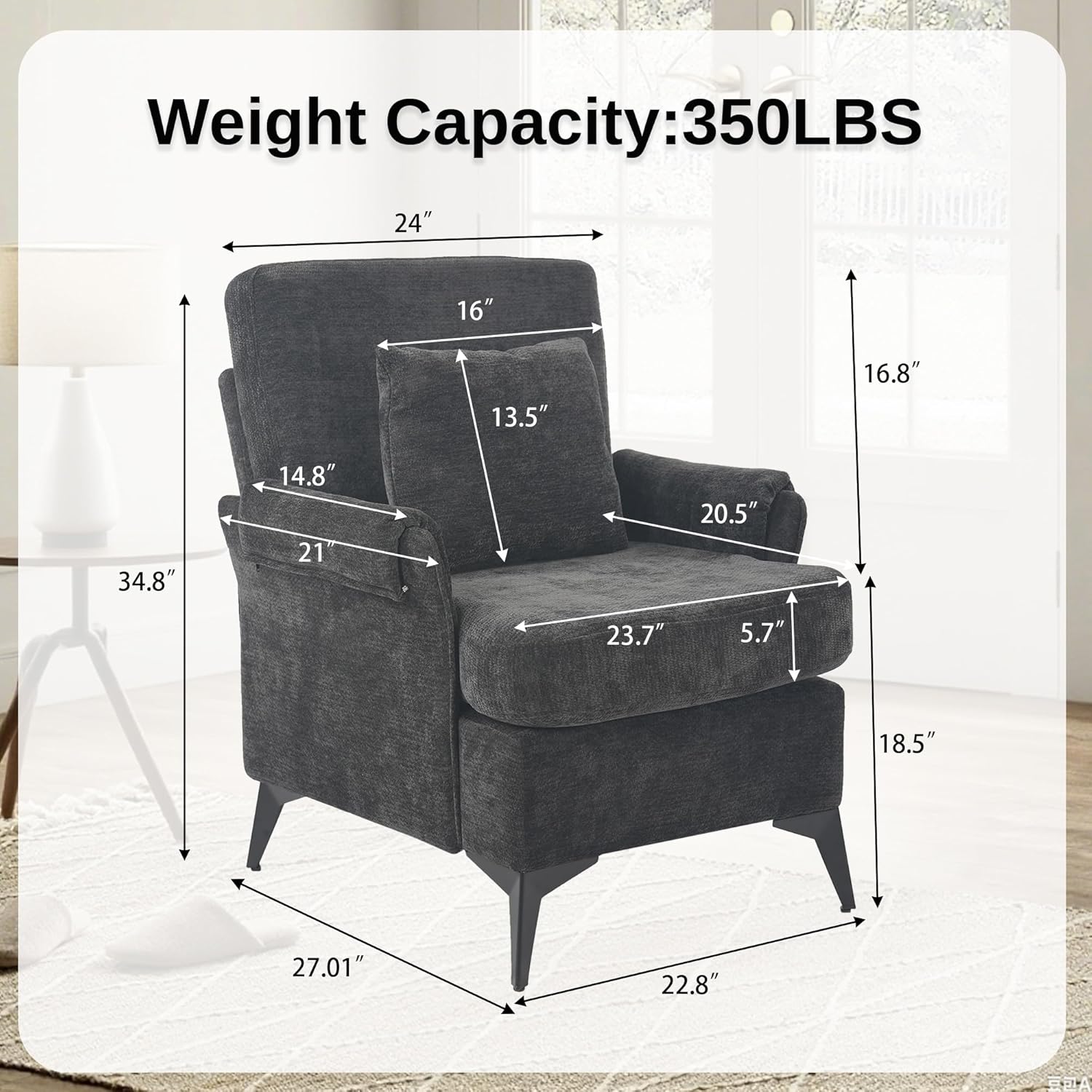 - Comfortable and Supportive: This modern accent chair will become your favorite new seat at home. It has seats padded with high-density sponge to provide a comfortable and supportive sitting experience. The sofa comes with a lumbar bag for excellent back support. The armchair provides you with plenty of room to relax your arms comfortably
