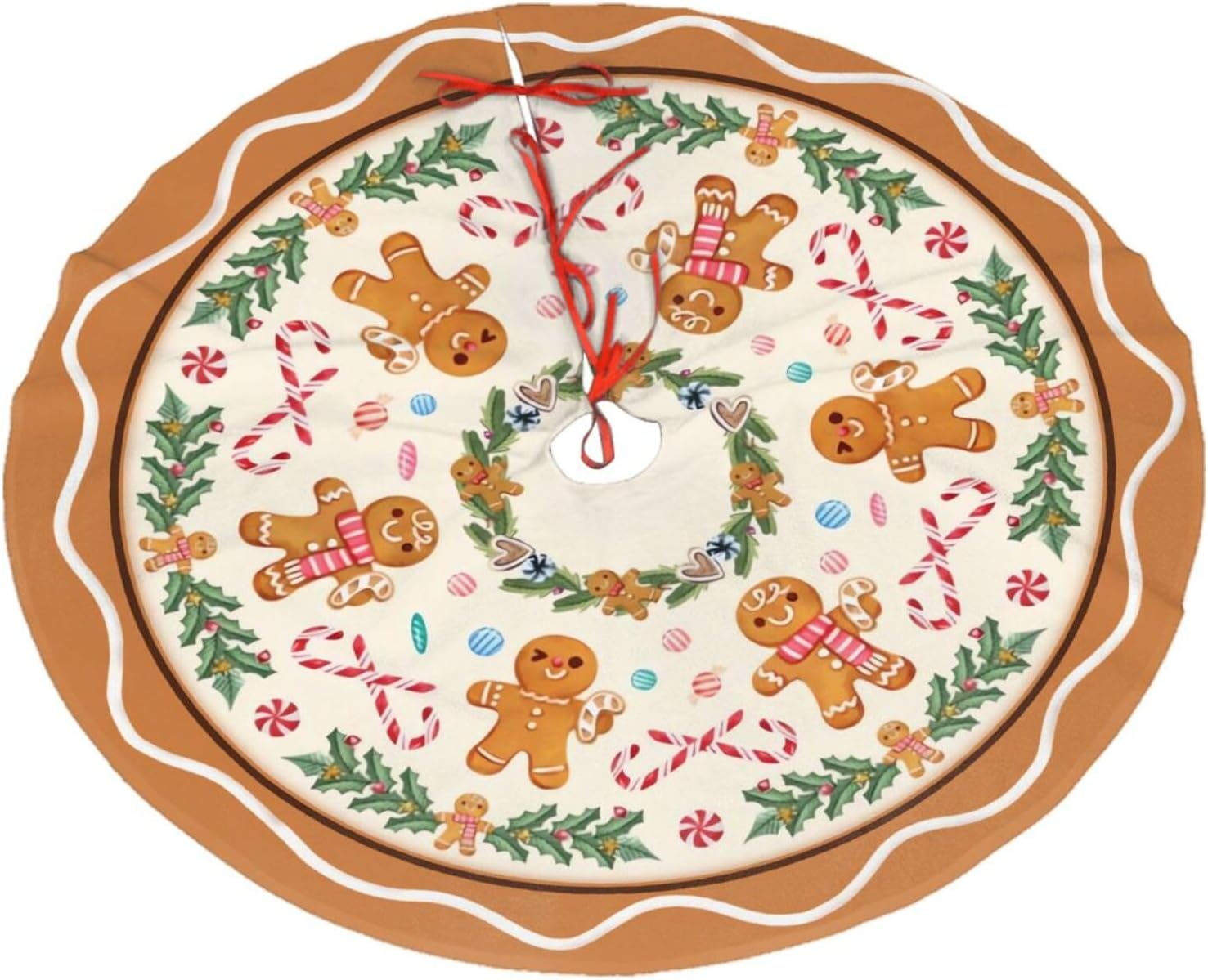 Christmas Tree Skirt,Gingerbread Xmas Tree Skirt Rustic Farmhouse Tree Skirt for Christmas Decor Xmas Holiday Home Party Decorations36