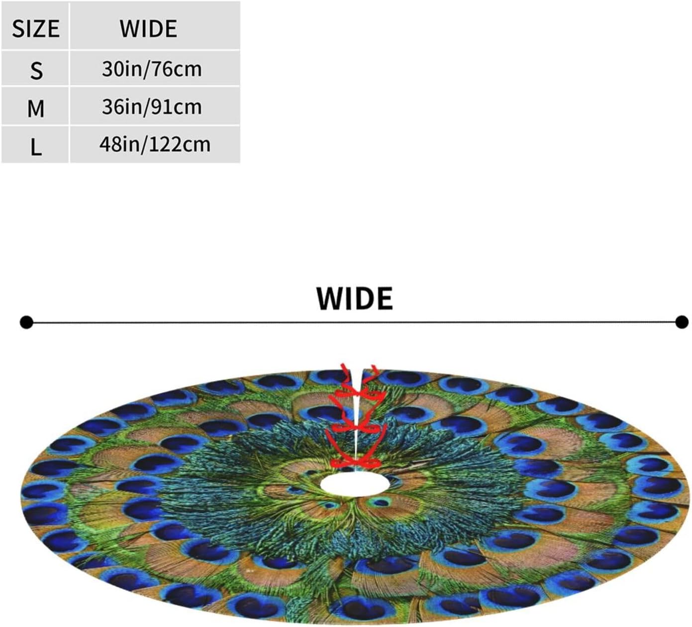 Christmas Tree Skirt,Peacock Feathers Circle Xmas Tree Skirt Rustic Farmhouse Tree Skirt for Christmas Decor Xmas Holiday Home Party Decorations48